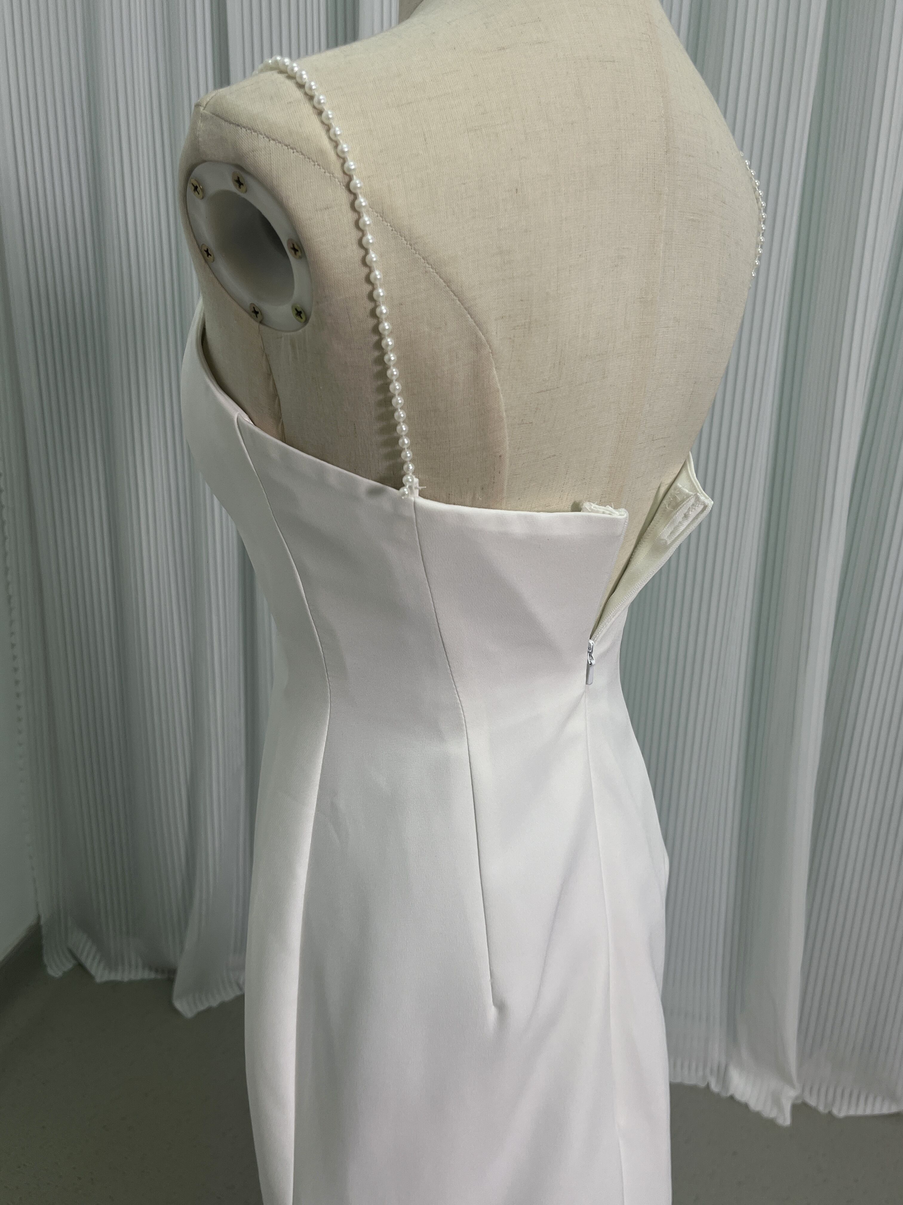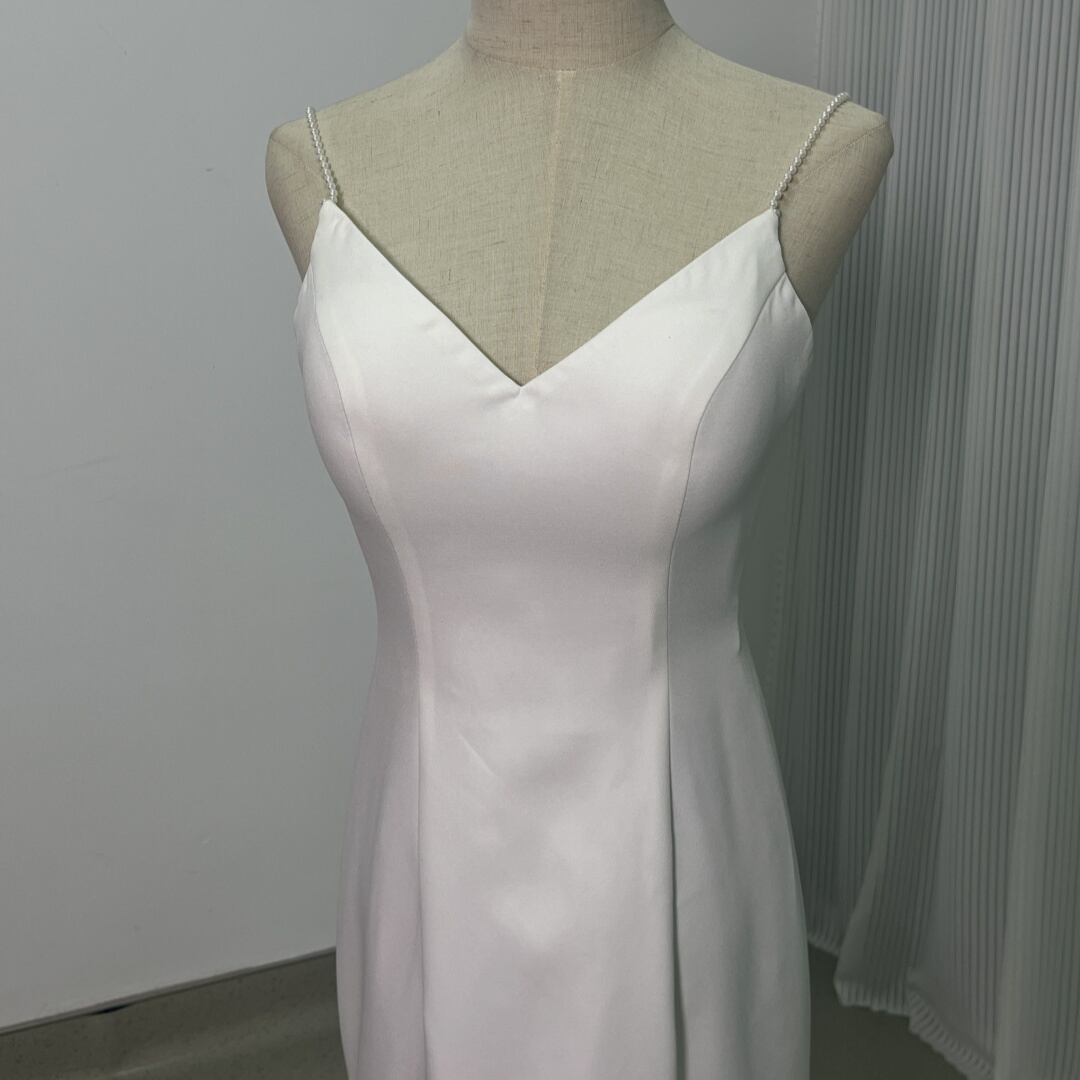 パーティードレス オフホワイト パール キャミソール Vネック スレンダーライン ファスナー 二次会