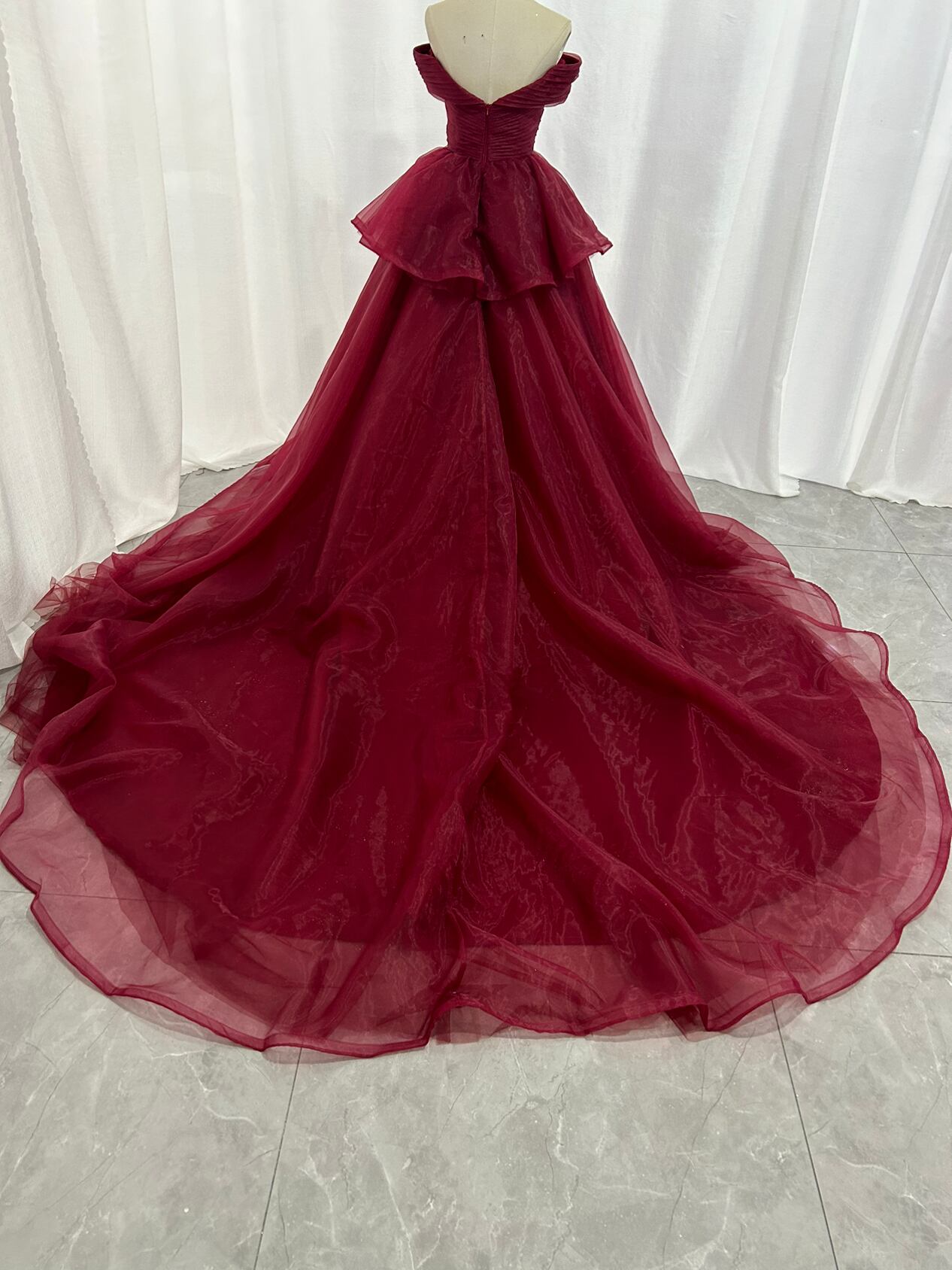 クラシカル カラードレス ワインレッド オフショルダー 上質オーガンジー ファスナー 前撮り