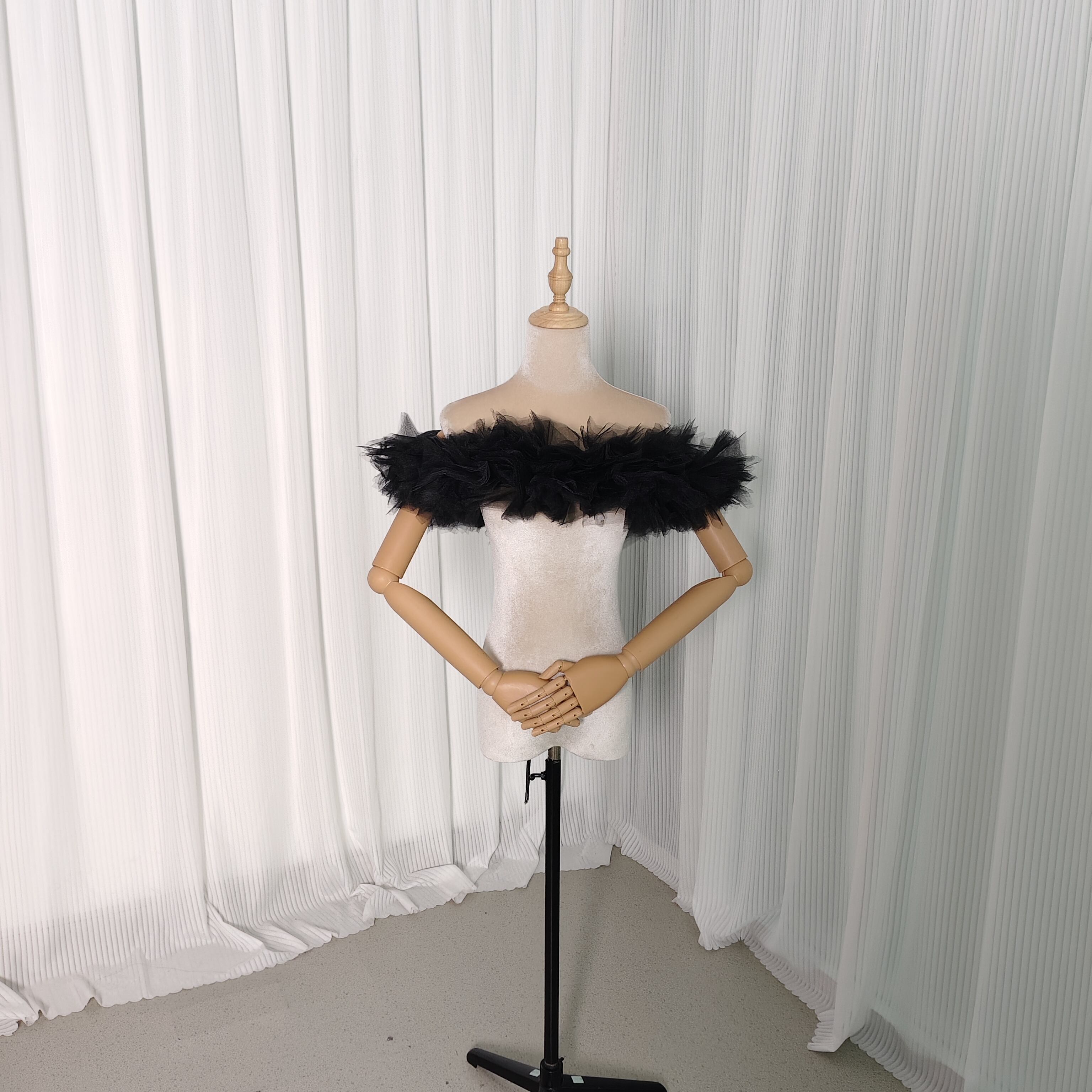 オフショルダー ブラック ソフトチュール 編み上げ 披露宴/結婚式 前撮り 色直し