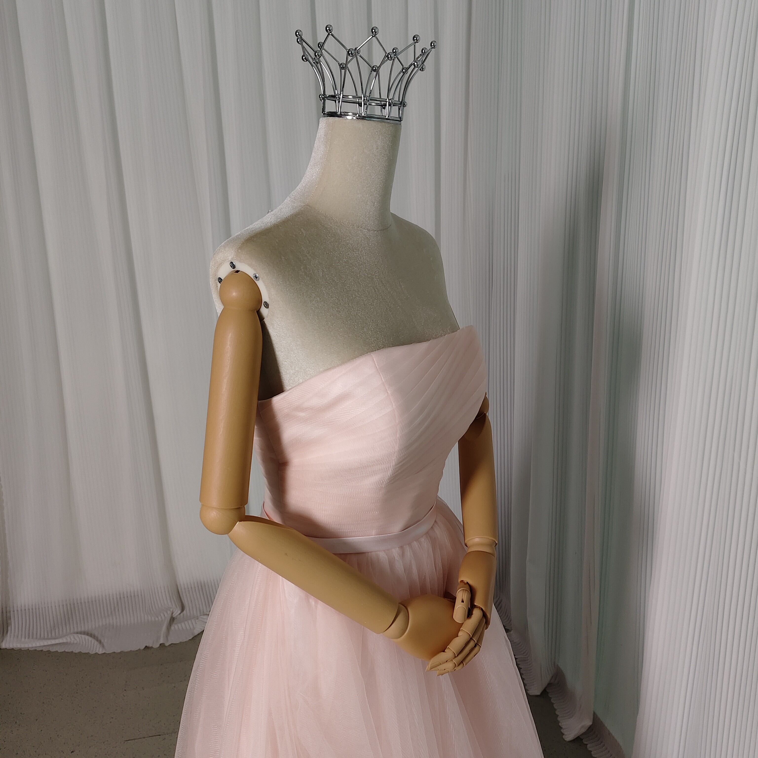 パーティードレス ピンク ベアトップ 編み上げ ロング チュールスカート 披露宴 音楽会