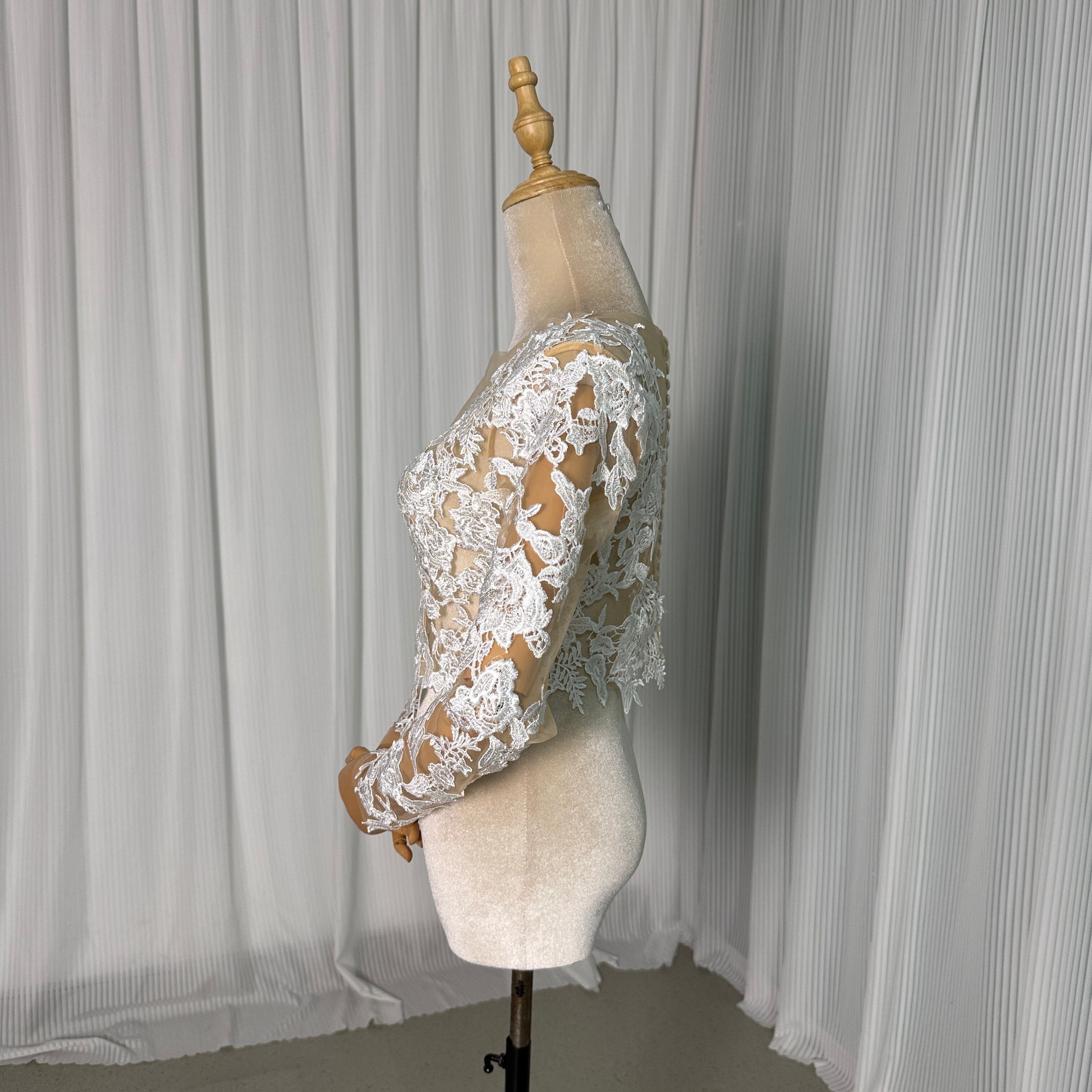 トップス Vネック ロングスリーブ くるみボタン 上品花レース 花嫁/結婚式