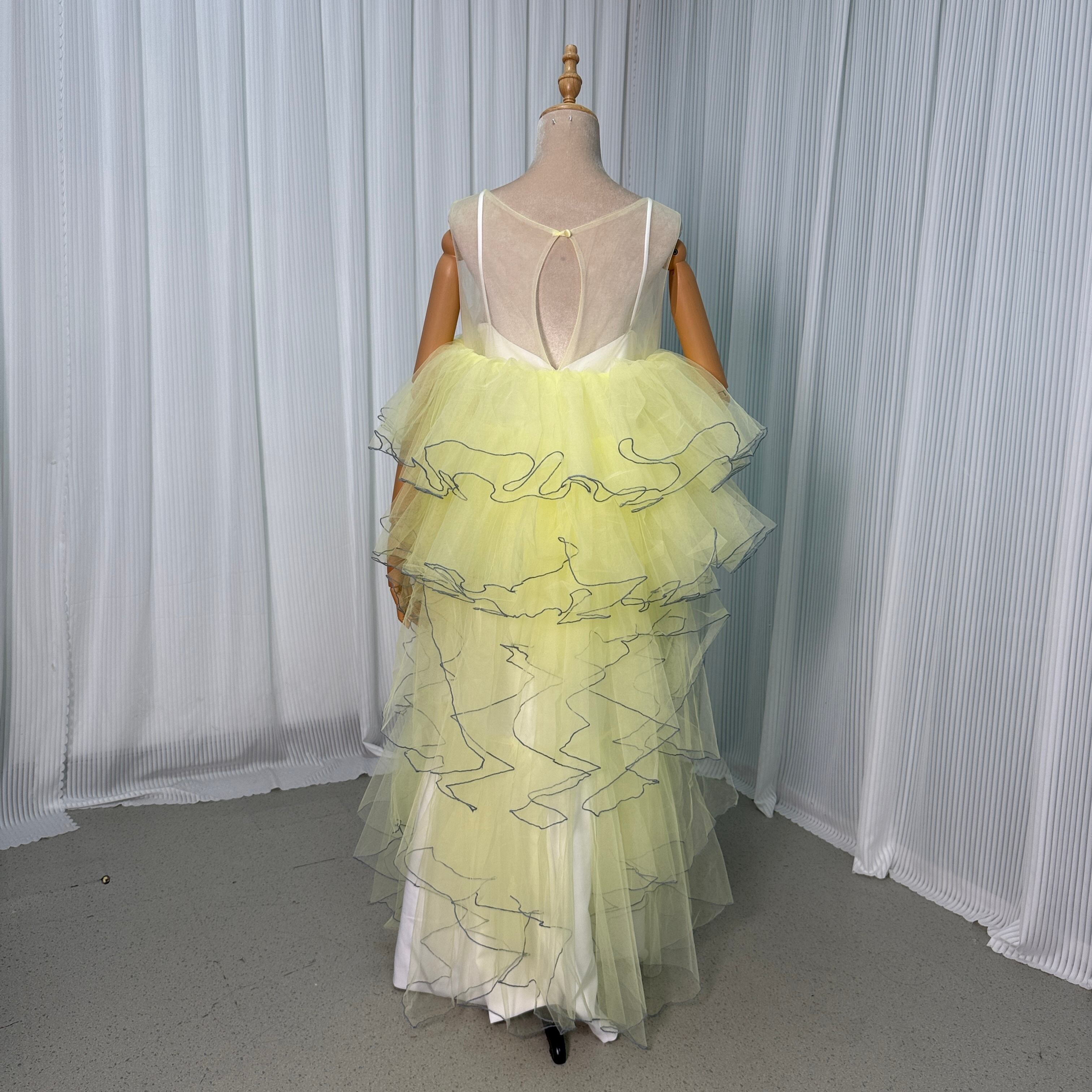 カラードレス パーティードレス イエロー ラッフルフリル ツーピース デザイン感 二次会 音楽会/発表会など