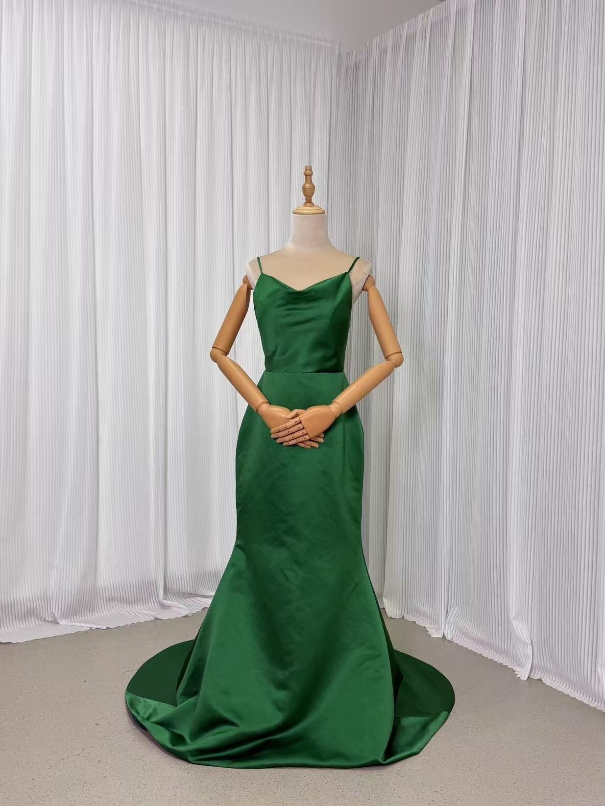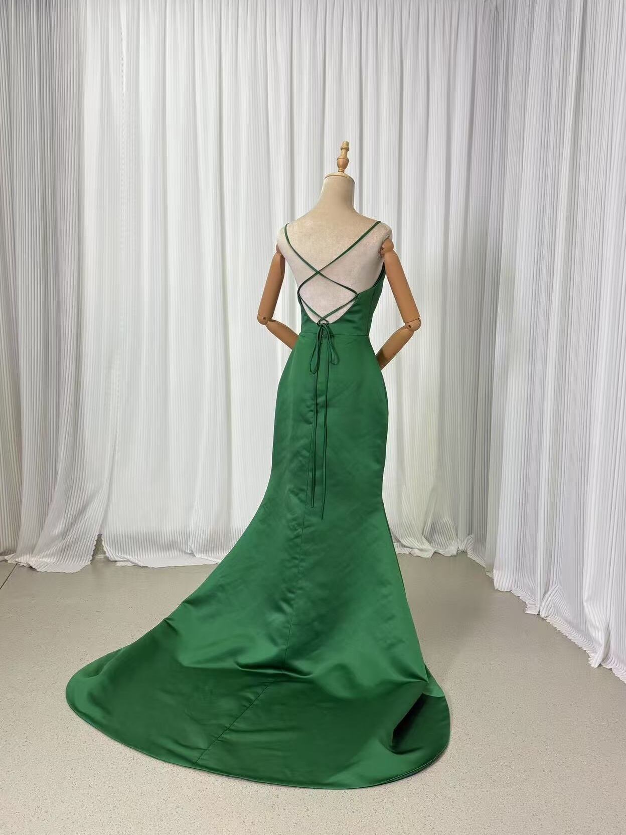 パーティードレス グリーン キャミソール 背中見せ マーメイドライン ファスナー 二次会