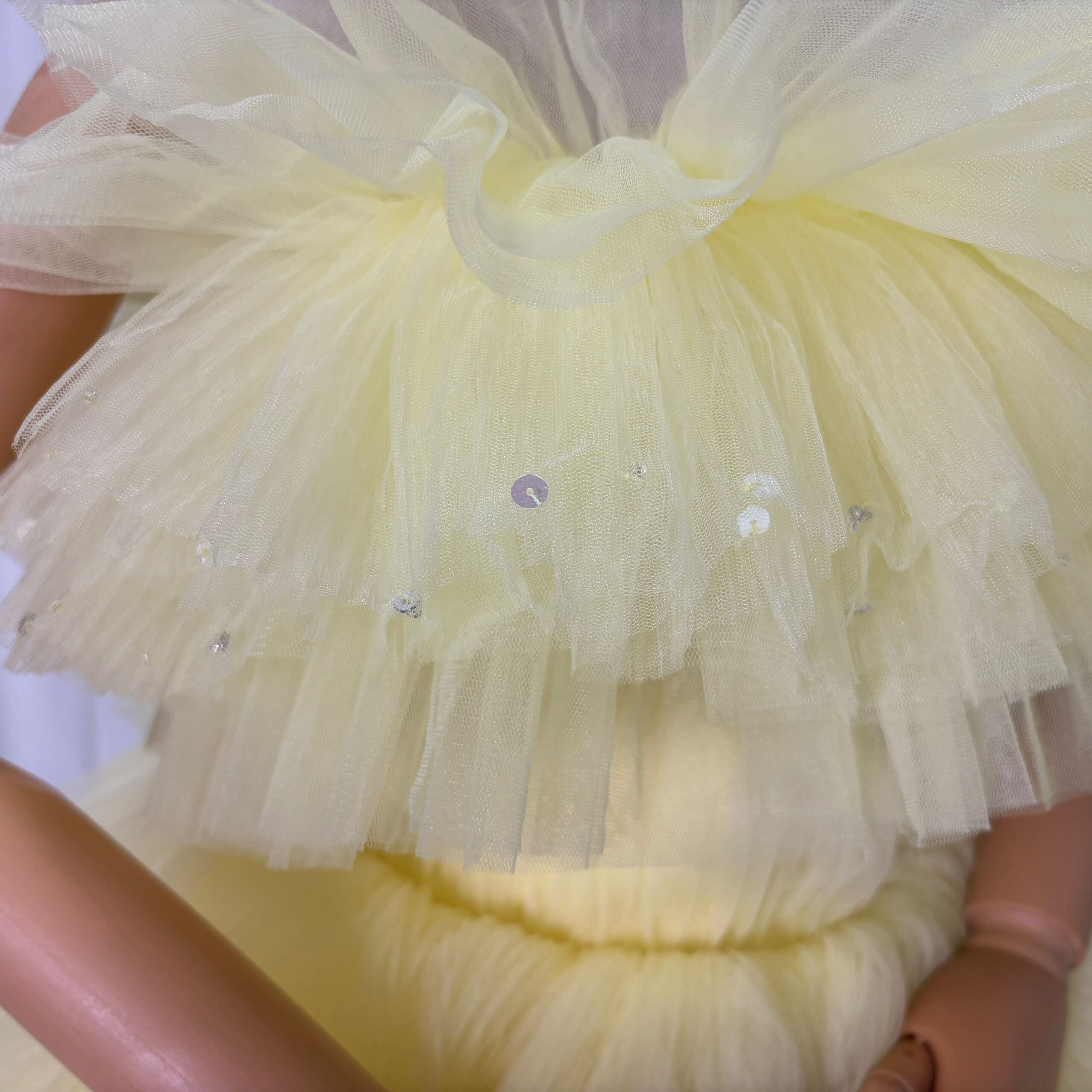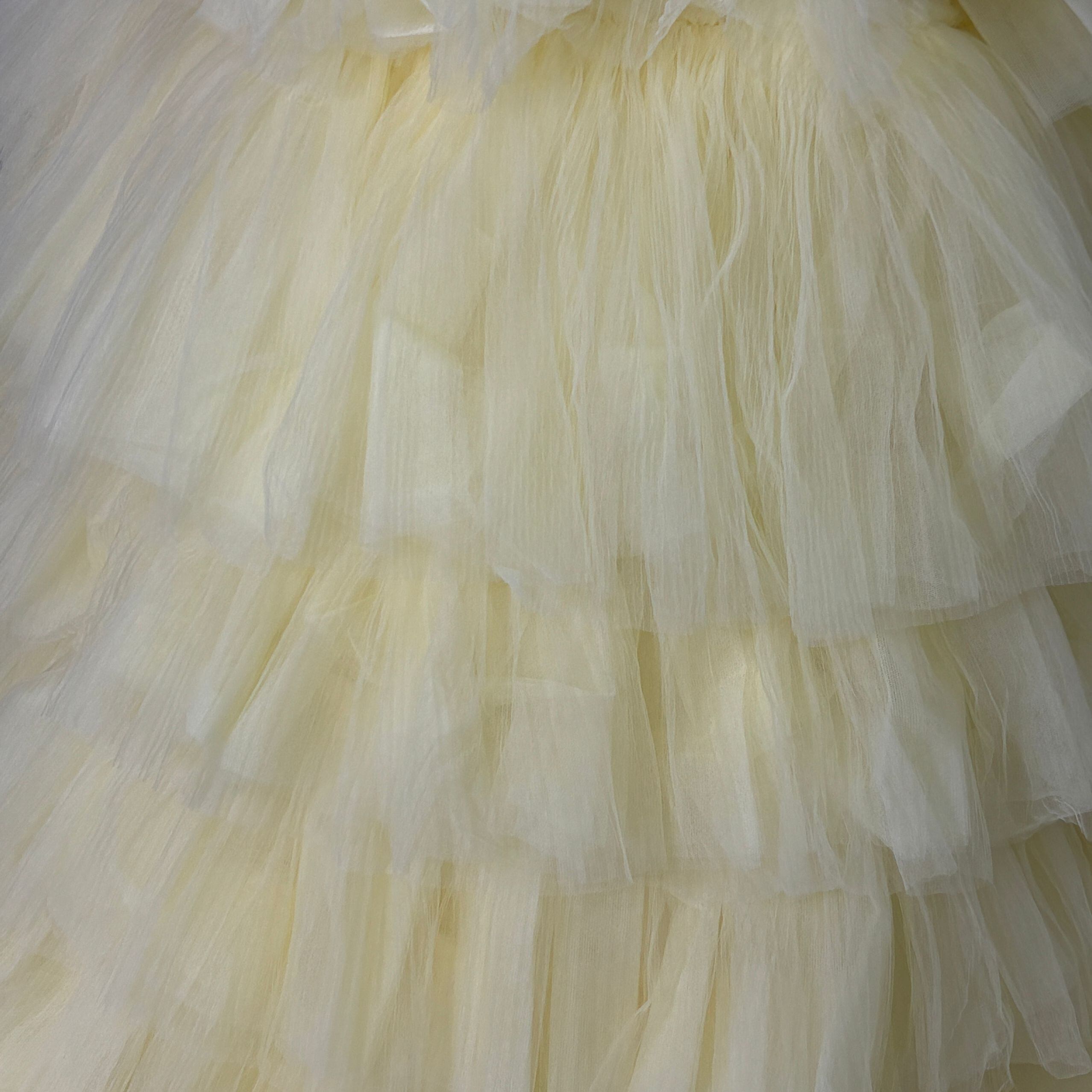 カラードレス イエロー ティアードのドレス ベアトップ チュールスカート 編み上げ 花嫁