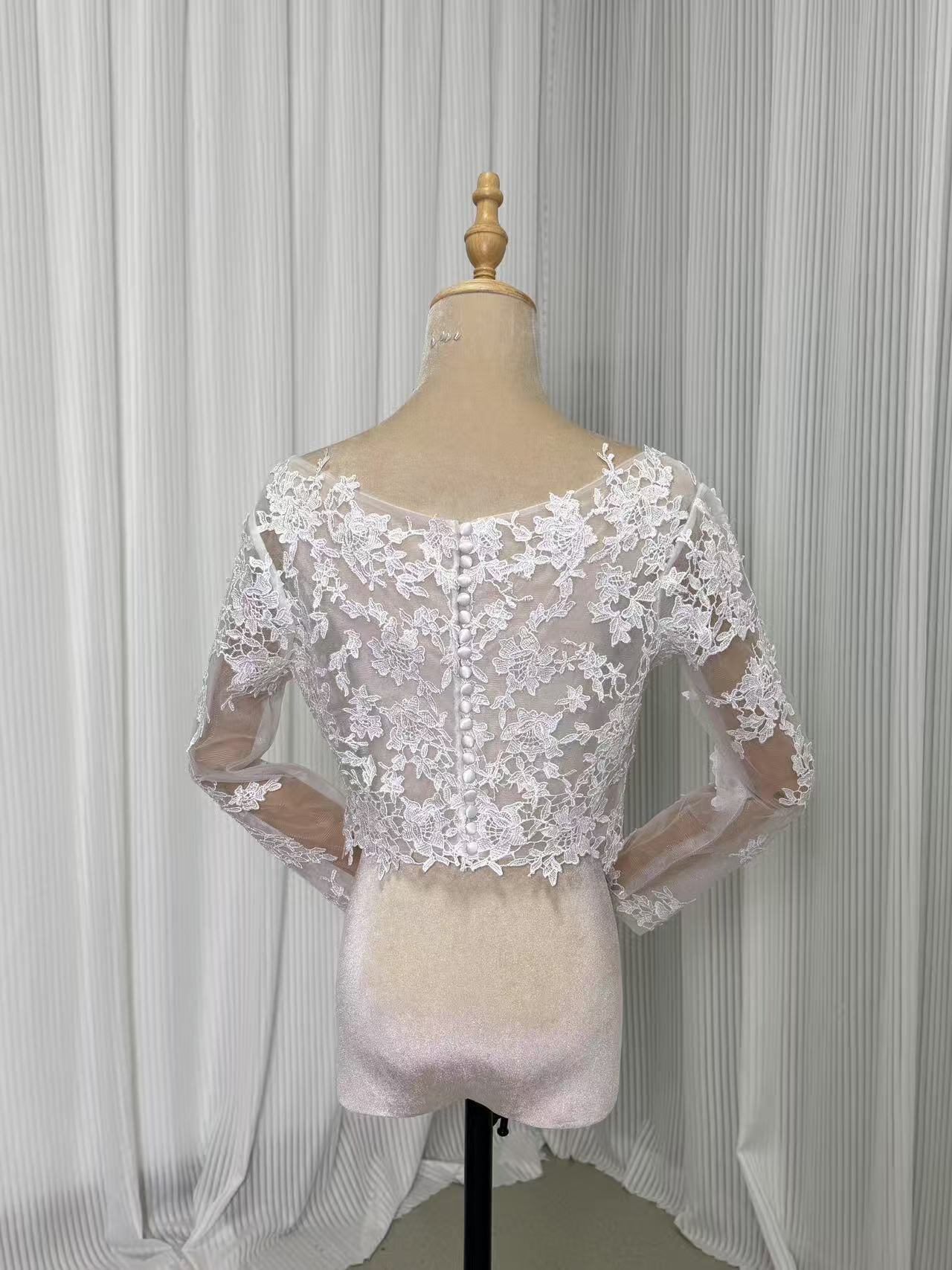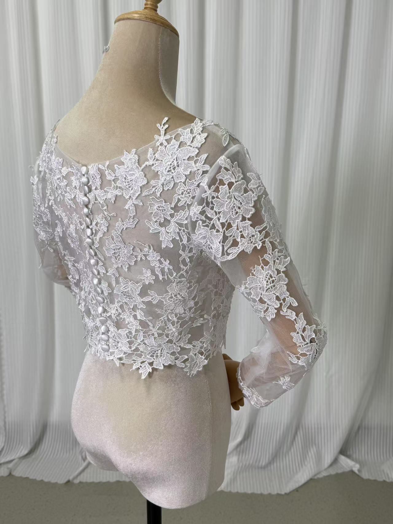 ボレロ ロングスリーブ ラウンドネック くるみボタン 流れる透け花レース 披露宴/結婚式