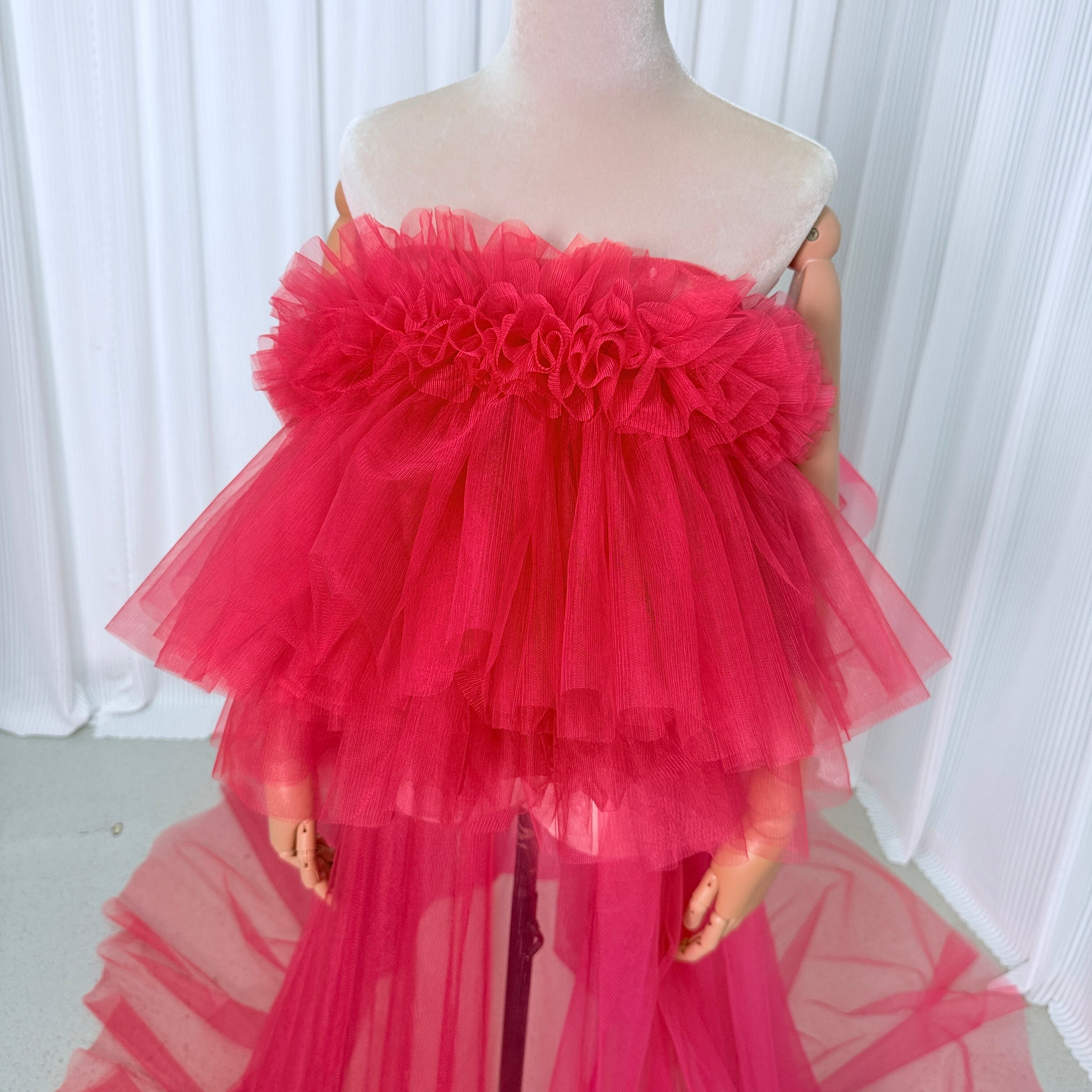 オーバードレス ビビッドピンク ビスチェタイプ カラードレス ソフトチュール 可愛い 前撮り