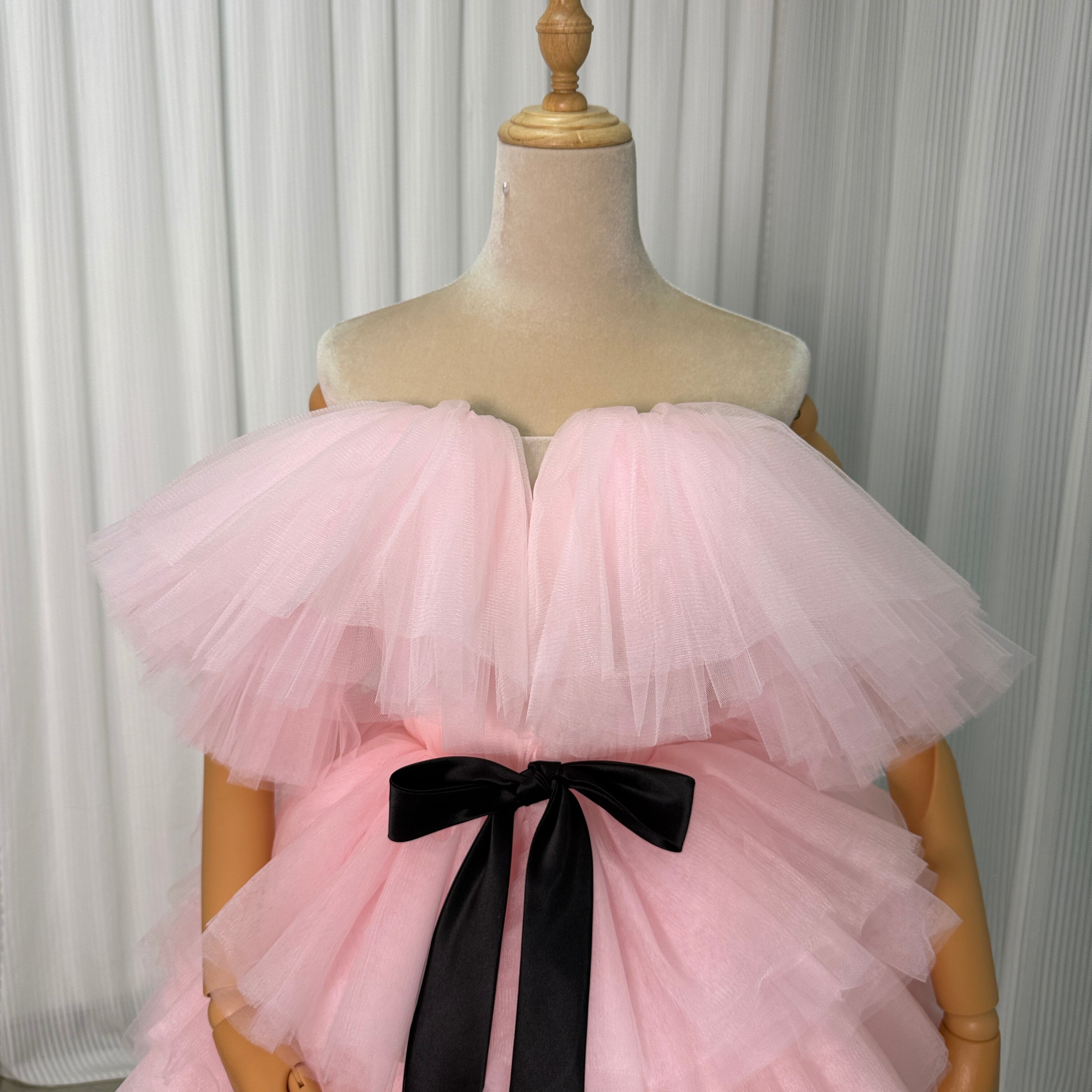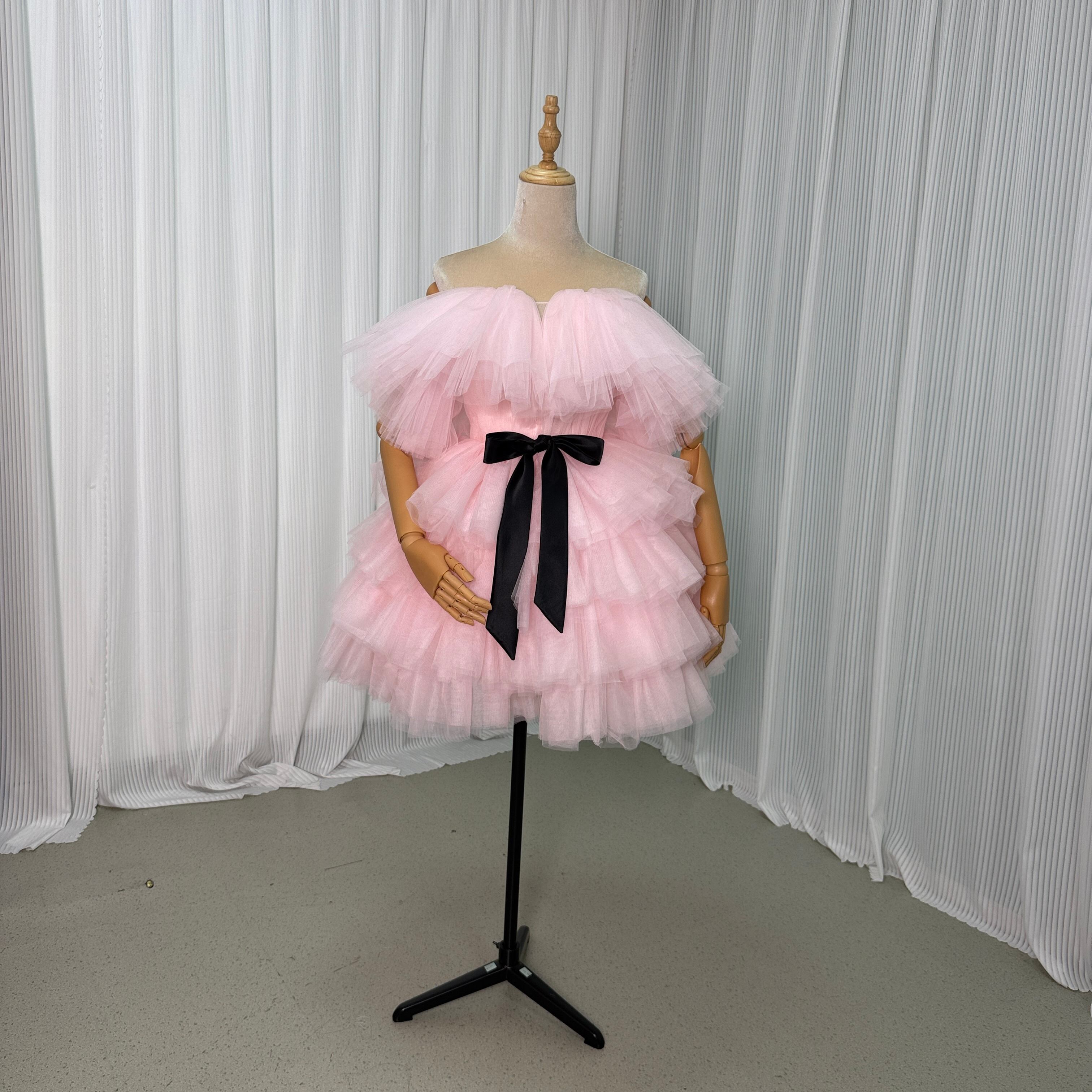 カラードレス ミニドレス ピンク ビスチェタイプ リボン 可愛い 披露宴/結婚式 抜群のおしゃれ見え