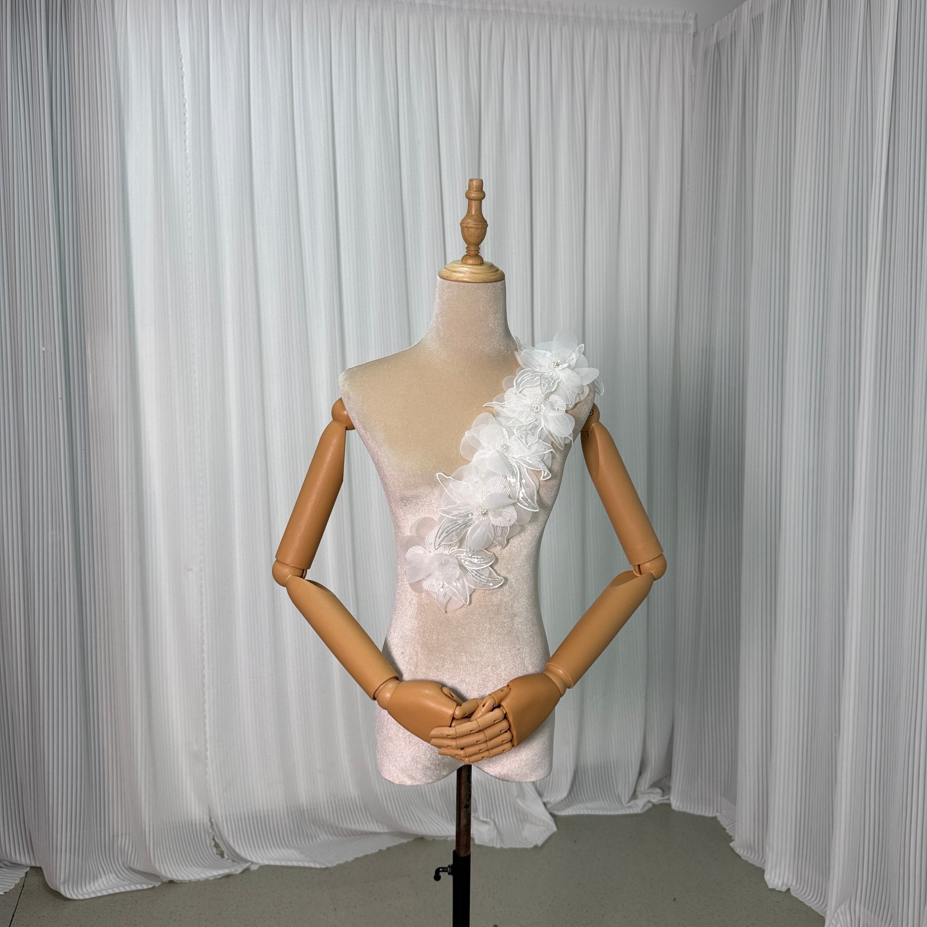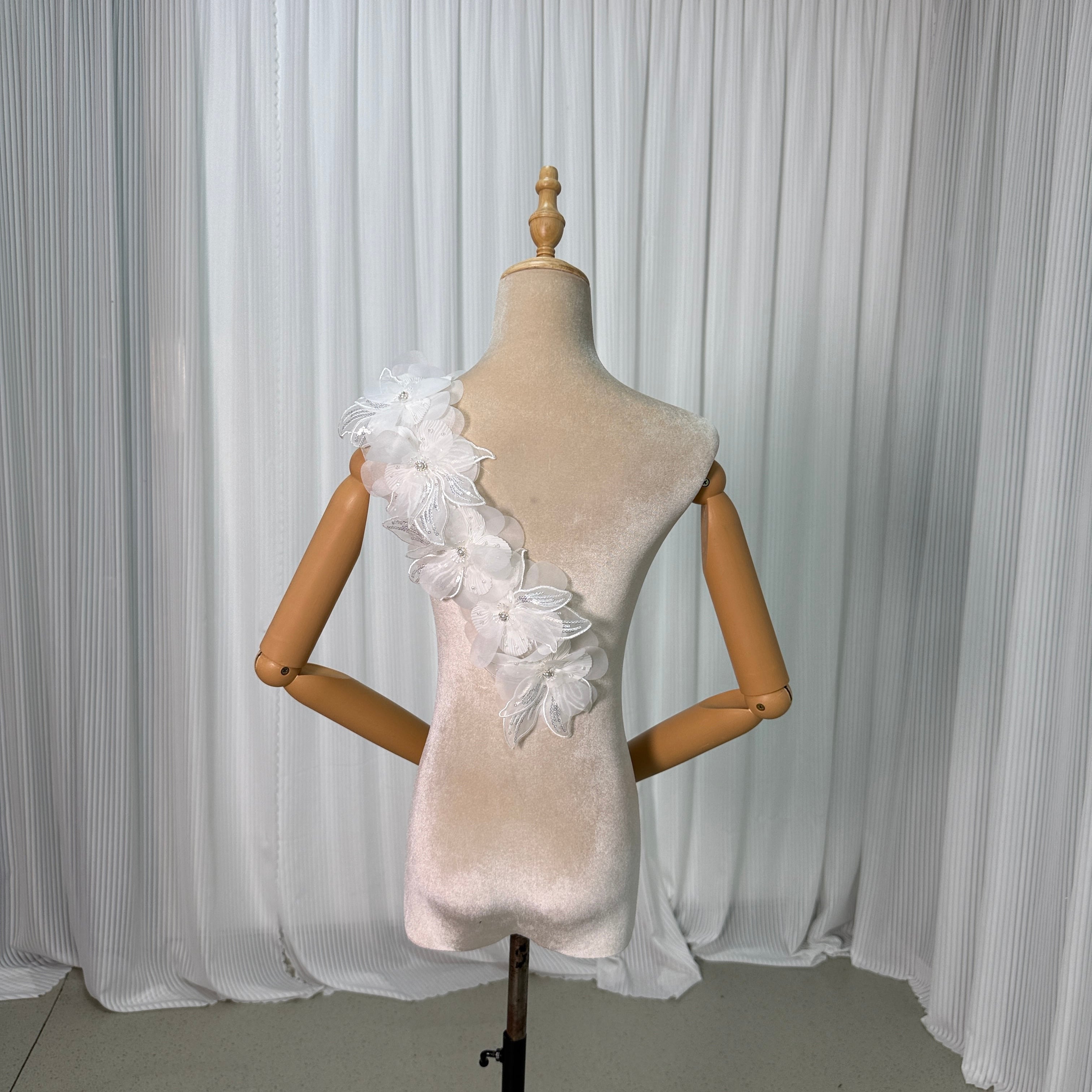 ショルダー型 花モチーフ オフホワイト 3D立体レース刺繍 可愛い 色直し 前撮り 結婚式