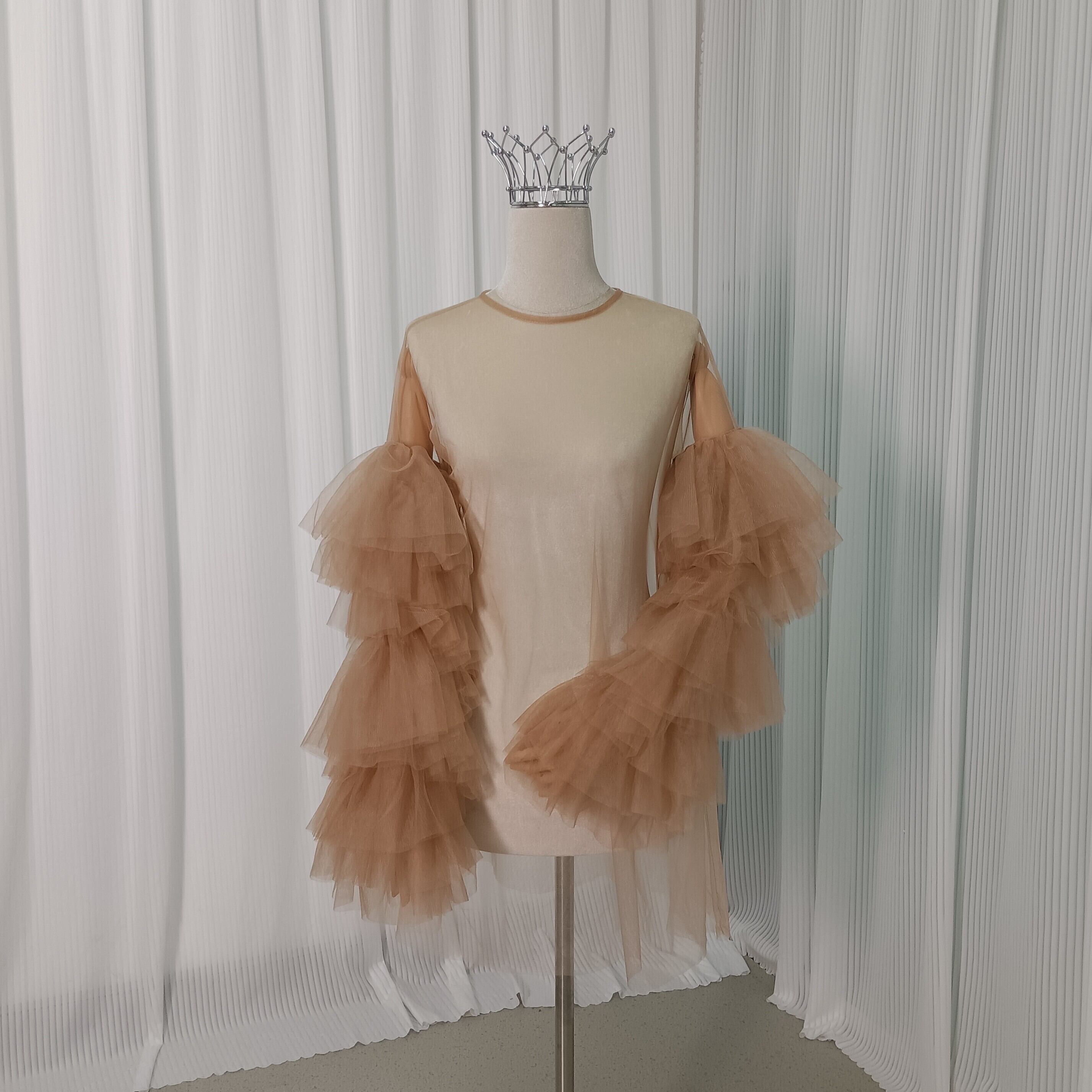 トップス ソフトチュール ベージュ レイヤードドレス ロングスリーブ カーディガン 二次会