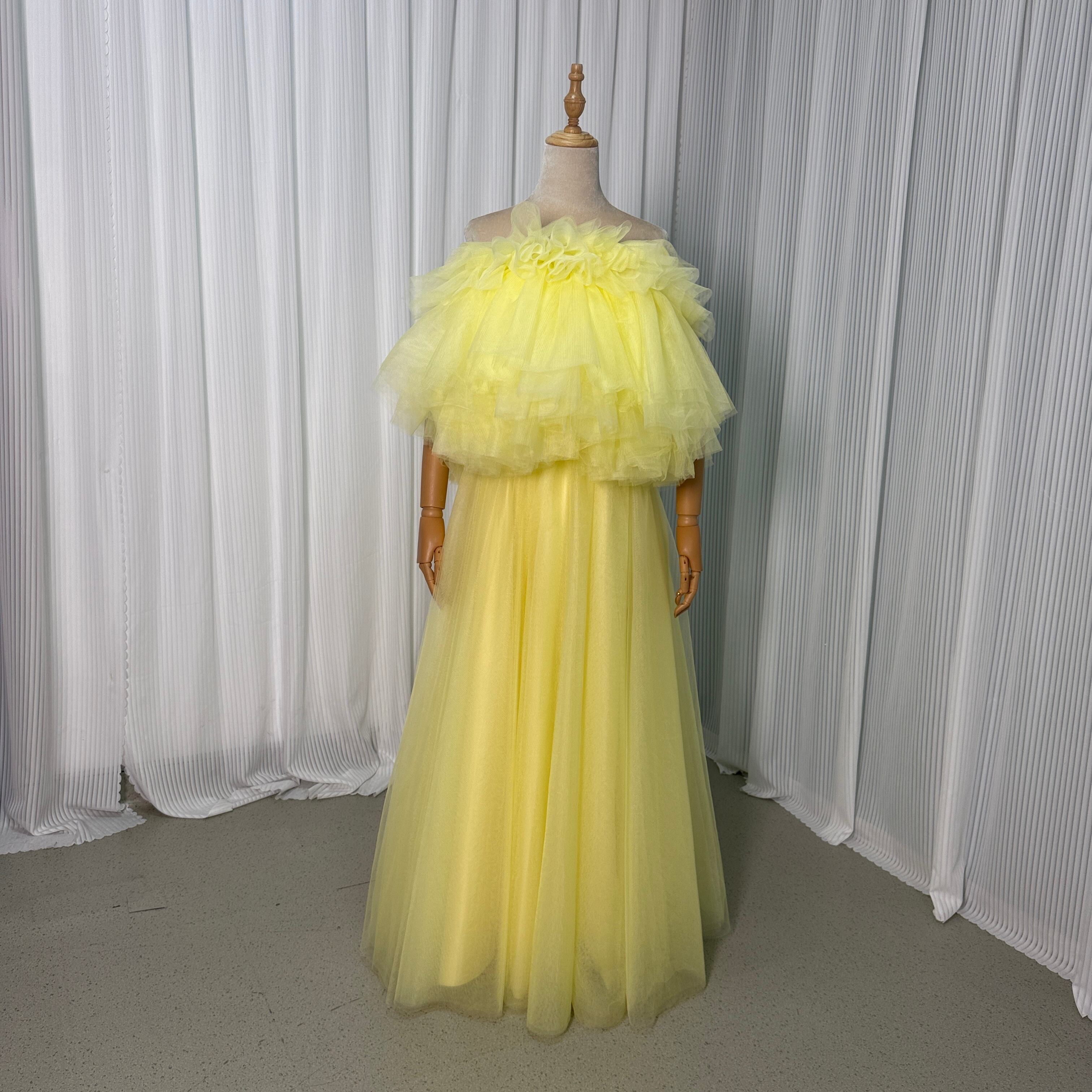 カラードレス イエロー ベアトップ ソフトチュール ボリュームドレス 音楽会/発表会など