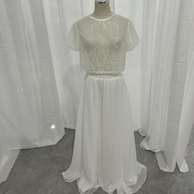 実例写真!パーティードレス ツーピース 流れる透け花レース ロング ふんわりシフォン 前撮り 挙式
