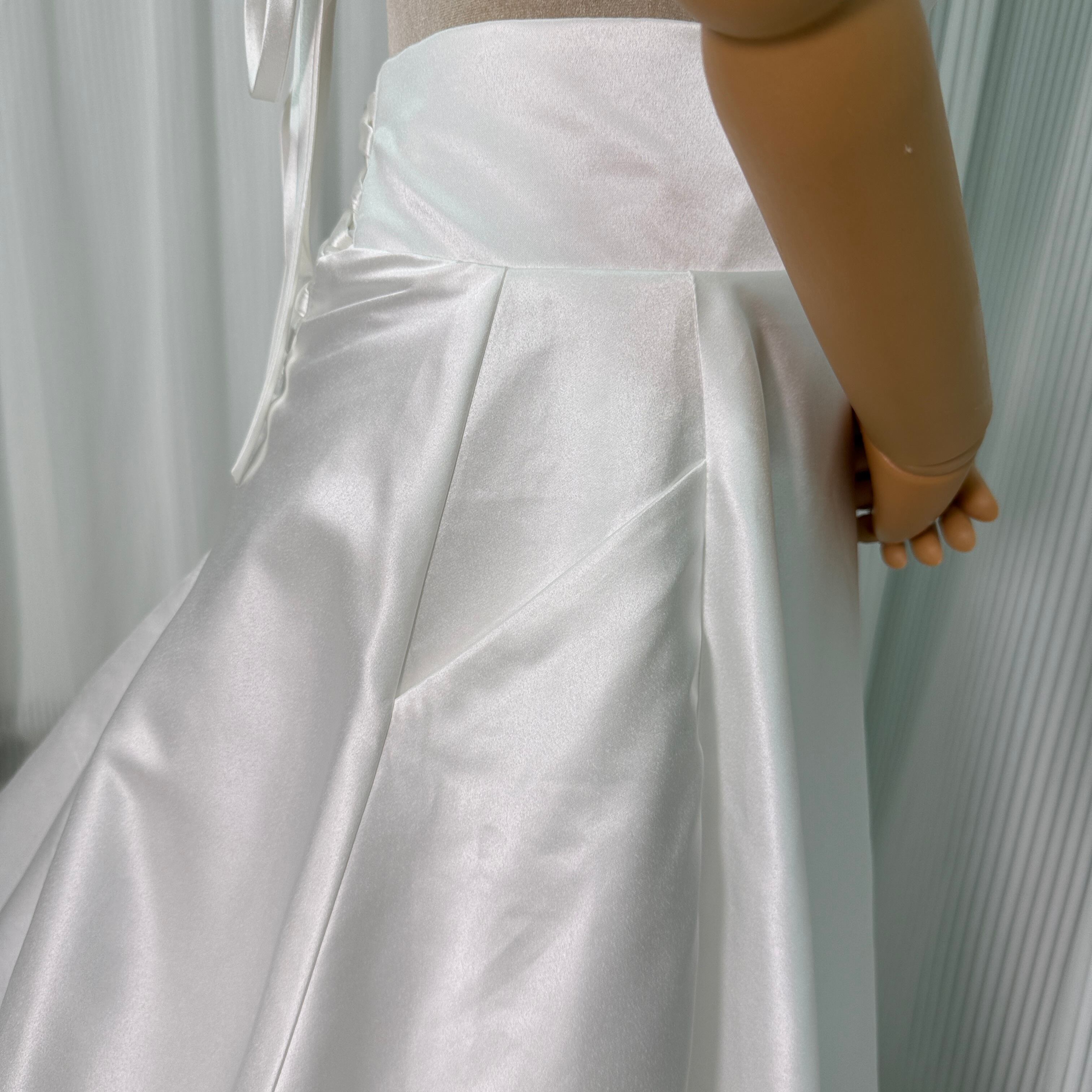 パーティードレス オフホワイト キャミソール ツーピース 編み上げ 光沢サテン 前撮り デザイン感