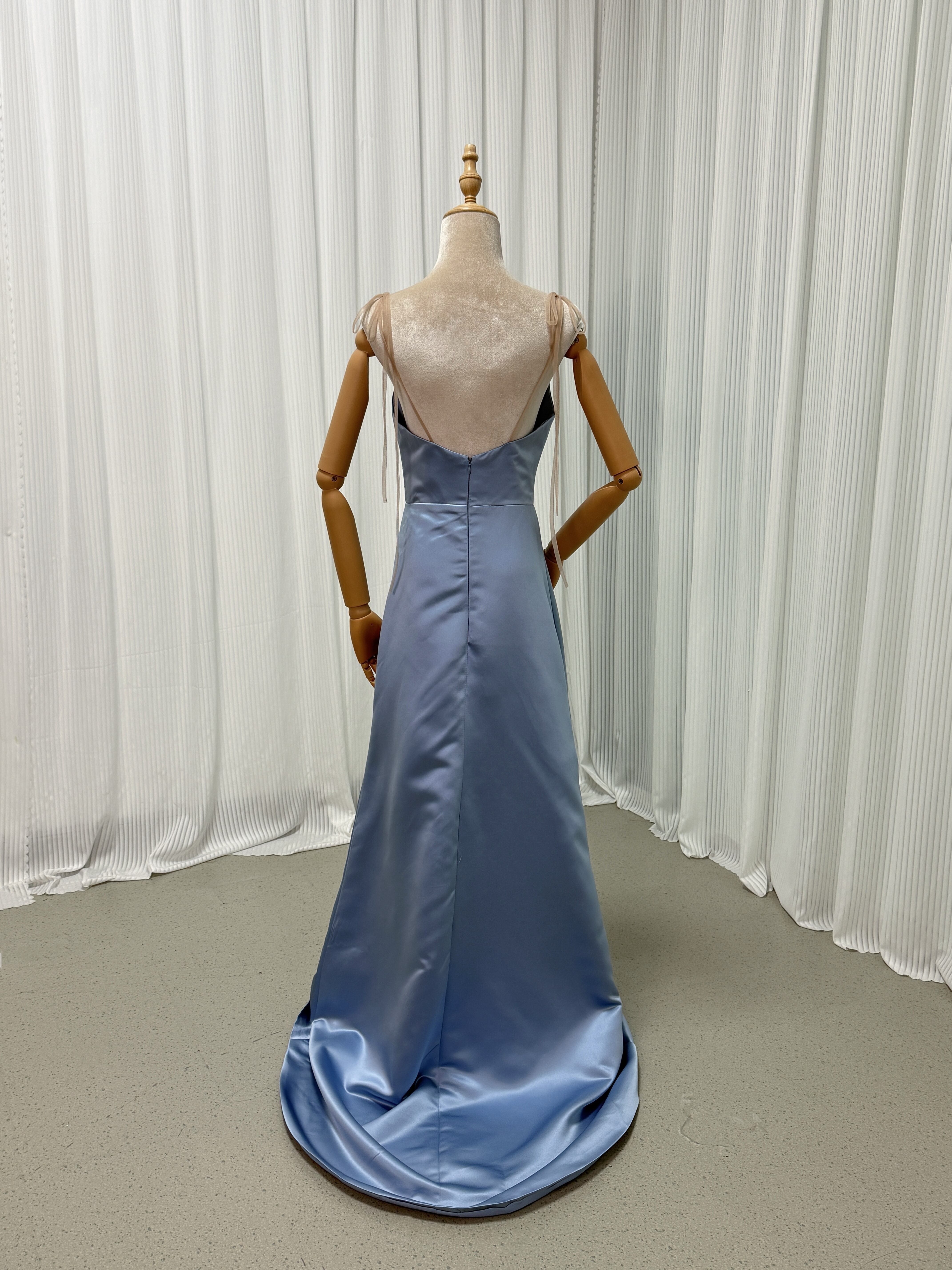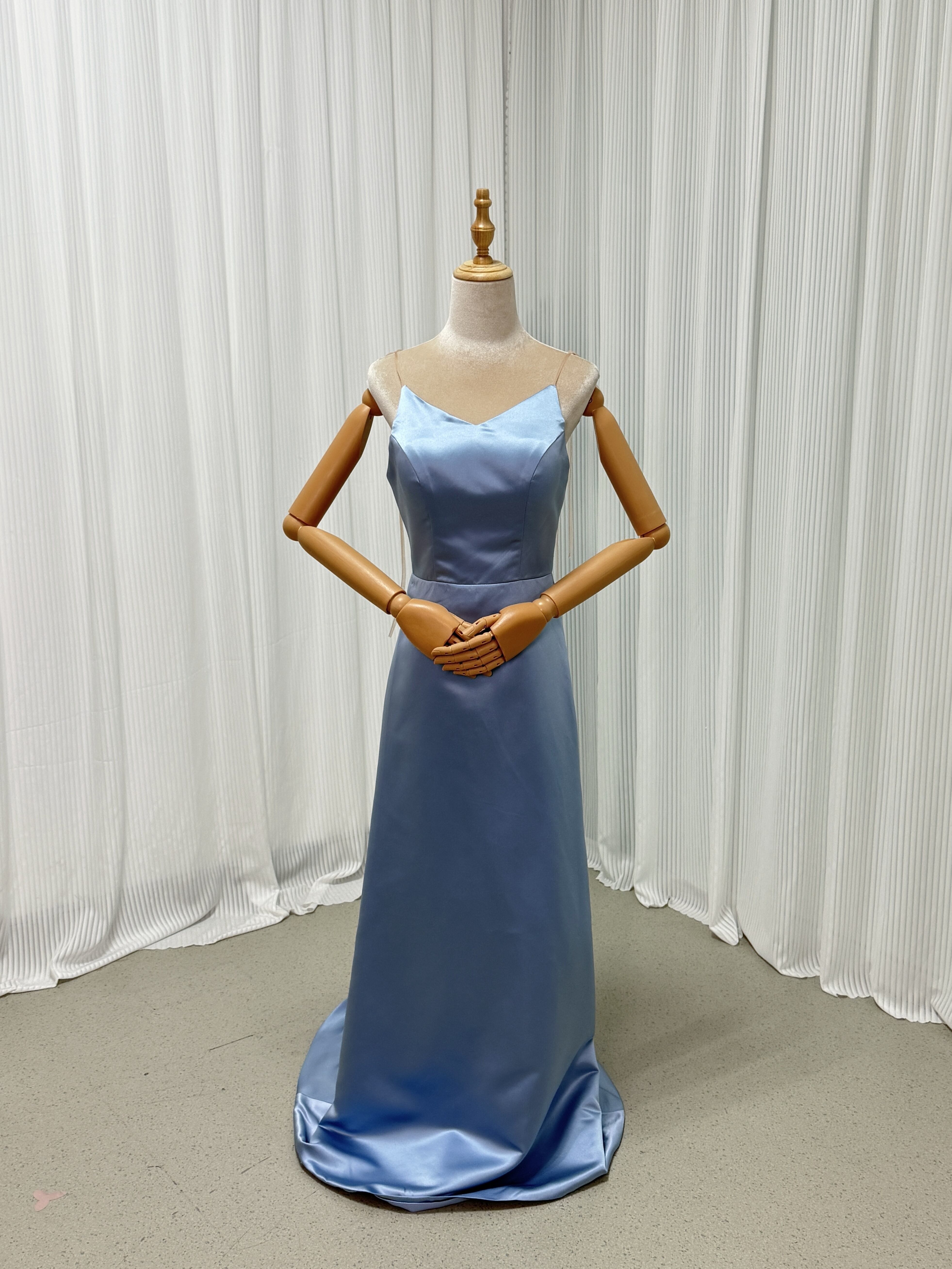 カラードレス ブルー キャミソール 光沢サテン 細見えシルエット エレガント 二次会