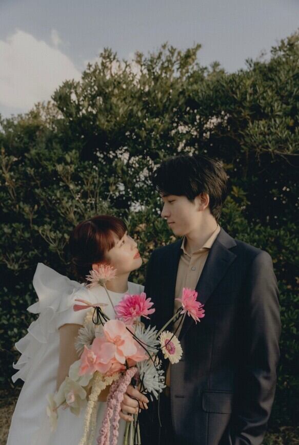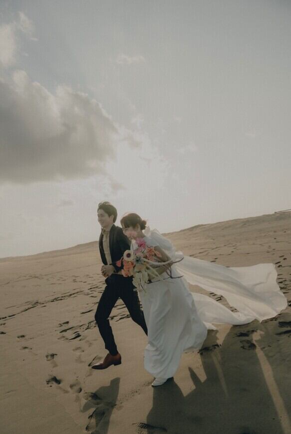 実例写真!リボンのみ ふわふわ袖 可愛い ふんわりシフォン ブライダル 前撮り 抜群のおしゃれ見え