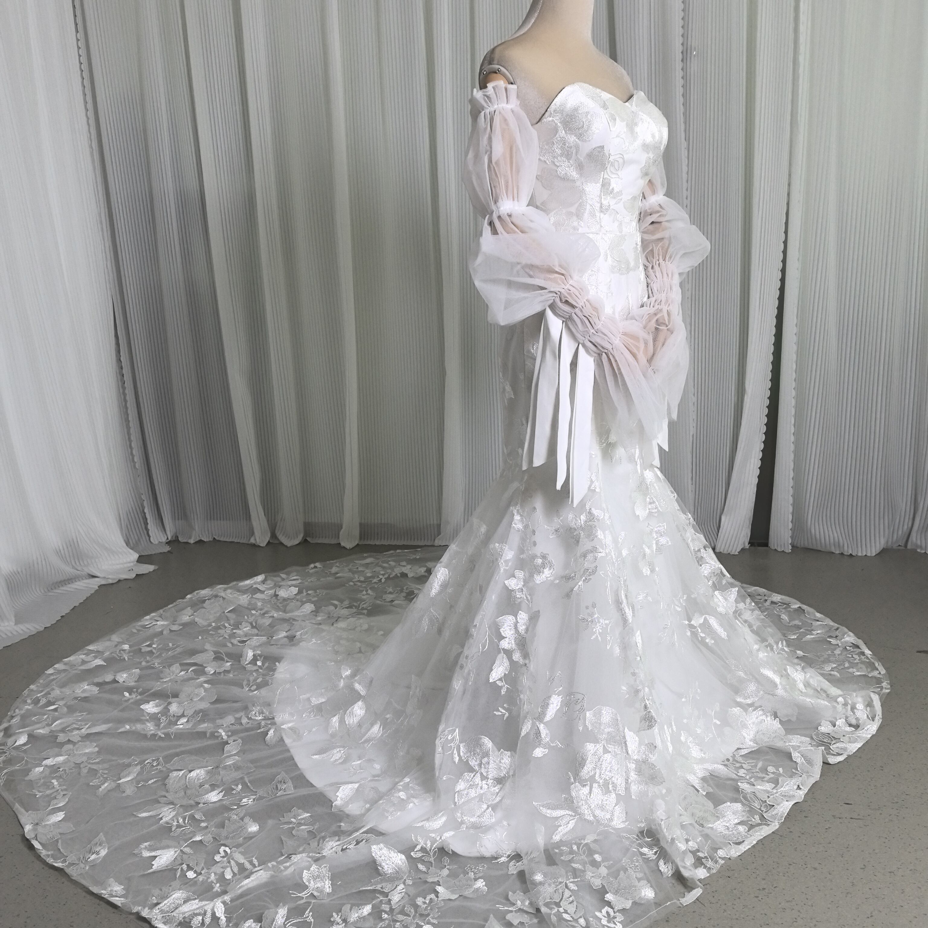 美品!ウエディングドレス 長袖 贅沢な総レース マーメイドライン セクシー ブライダル 華やかなトレーン