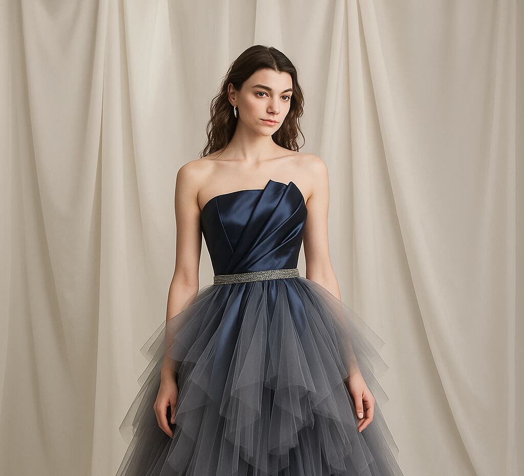 ブルーグレーカラードレス ふんわり オートクチュールスカート アシンメトリー