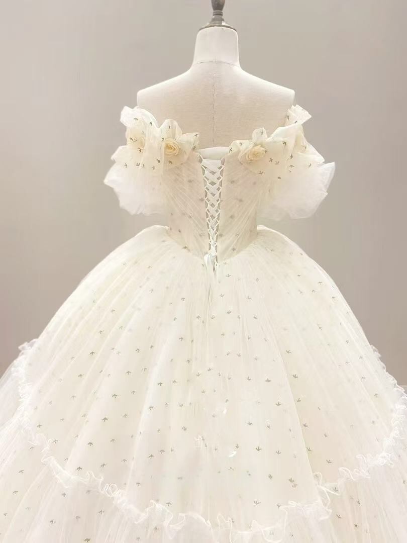 カラードレス 薄シャンパンの色 オフショルダー ソフトチュール プリンセスライン 二次会/前撮り