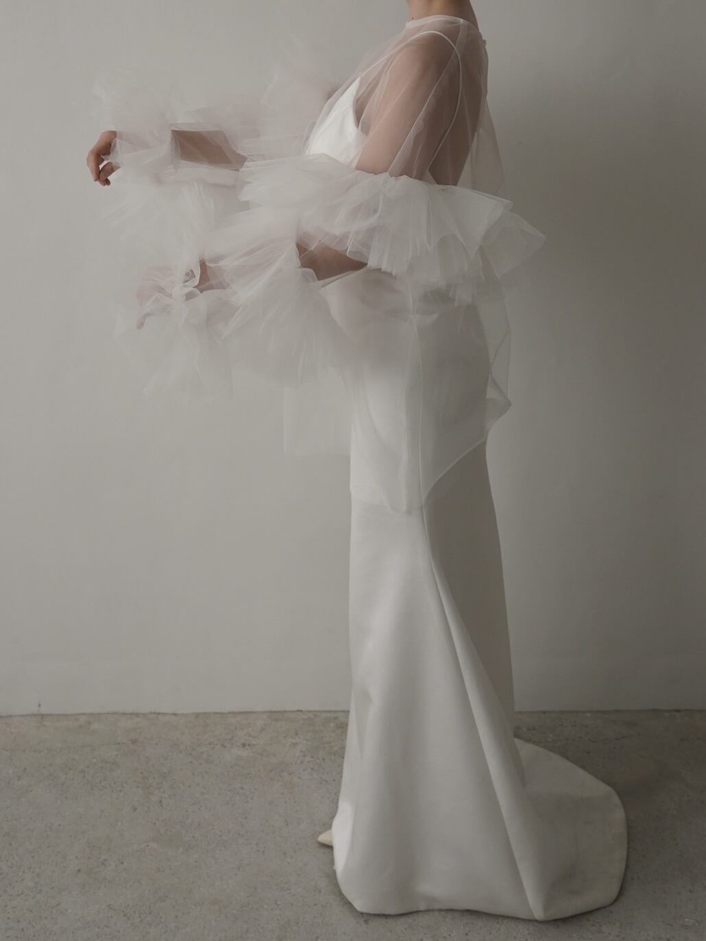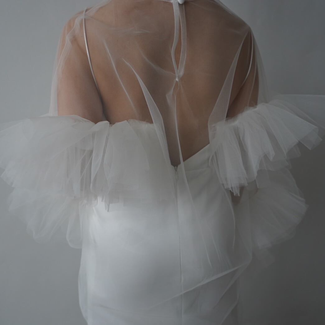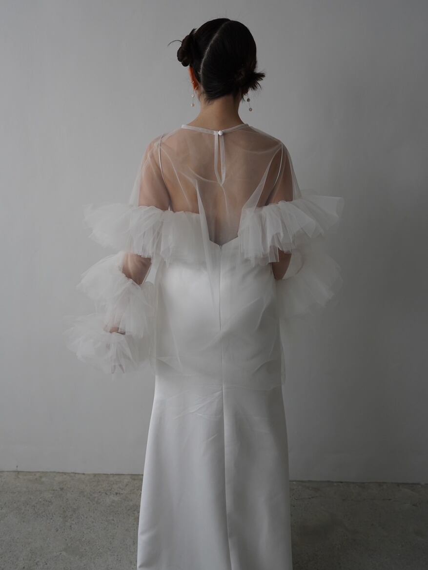 トップスのみ ソフトチュール ラッフルフリル 前撮り 妊婦 可愛い 色直し 花嫁/ウェディングドレス