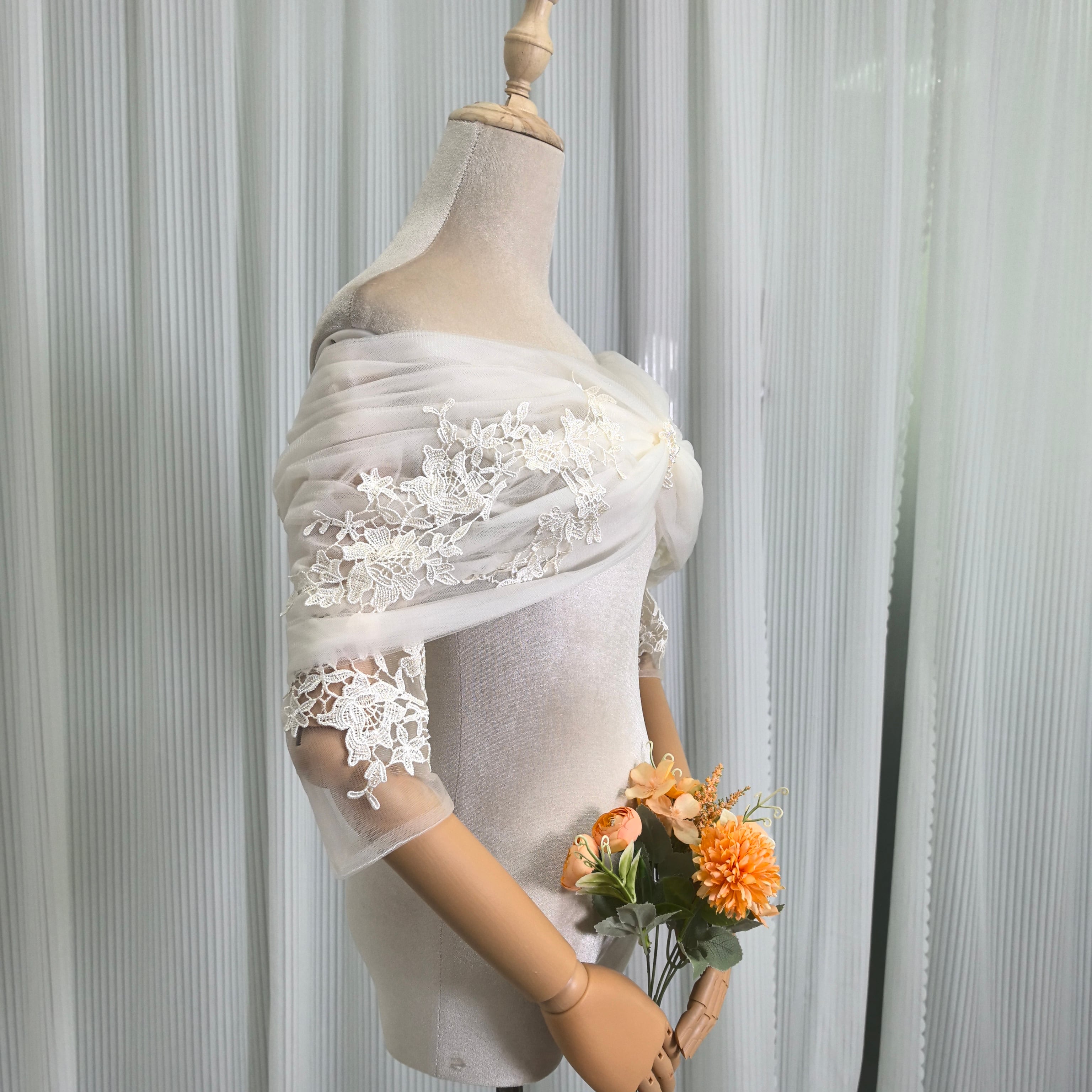 美品!取り外しオフショルダー アイボリー 七分袖丈 上品花レース 大人っぽい クラシカル 拳式