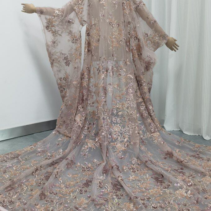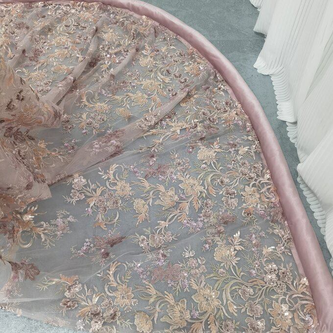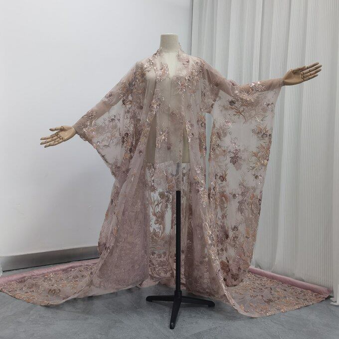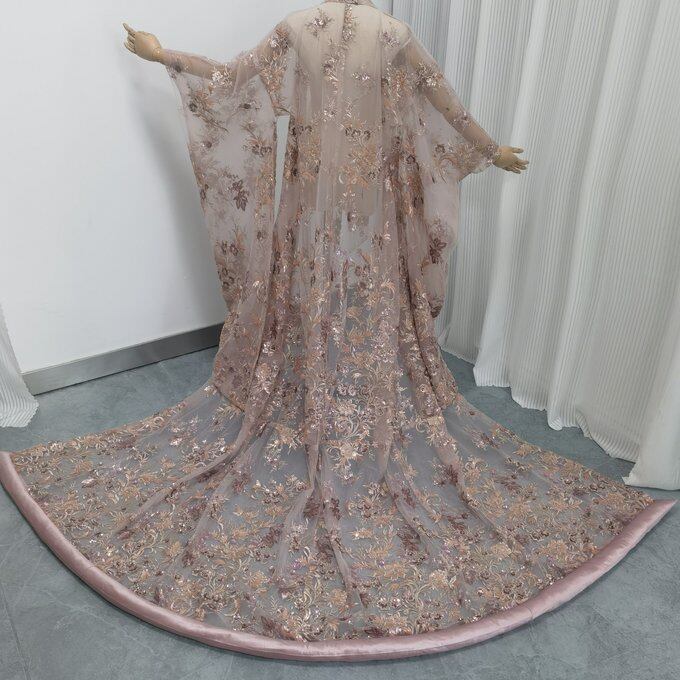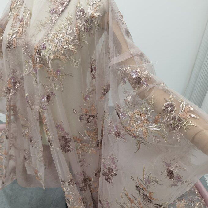 実例写真!ピンク オーガンジー打掛 キラキラ光る刺繍 着物 オーバードレス レース羽織 お色直し