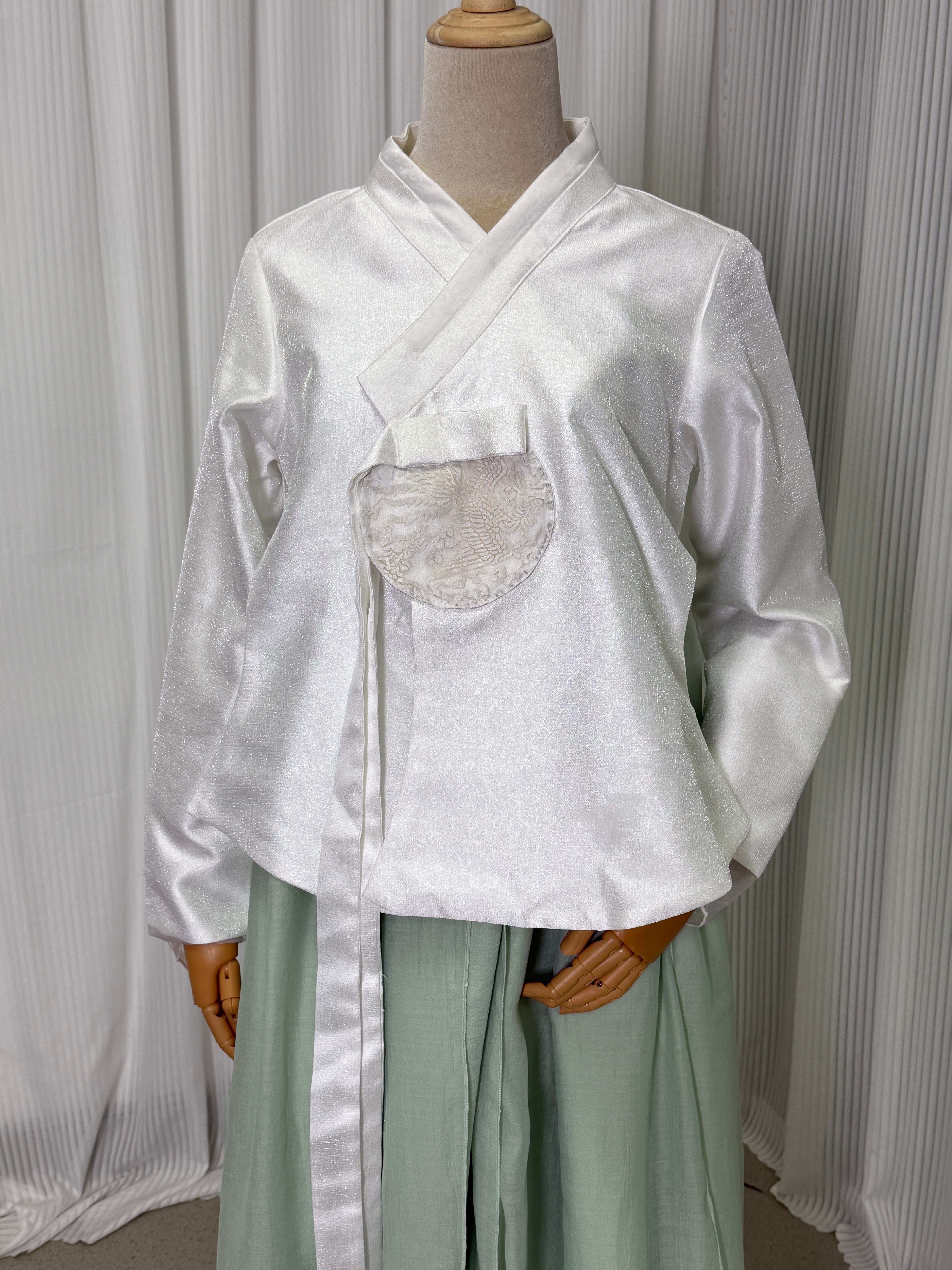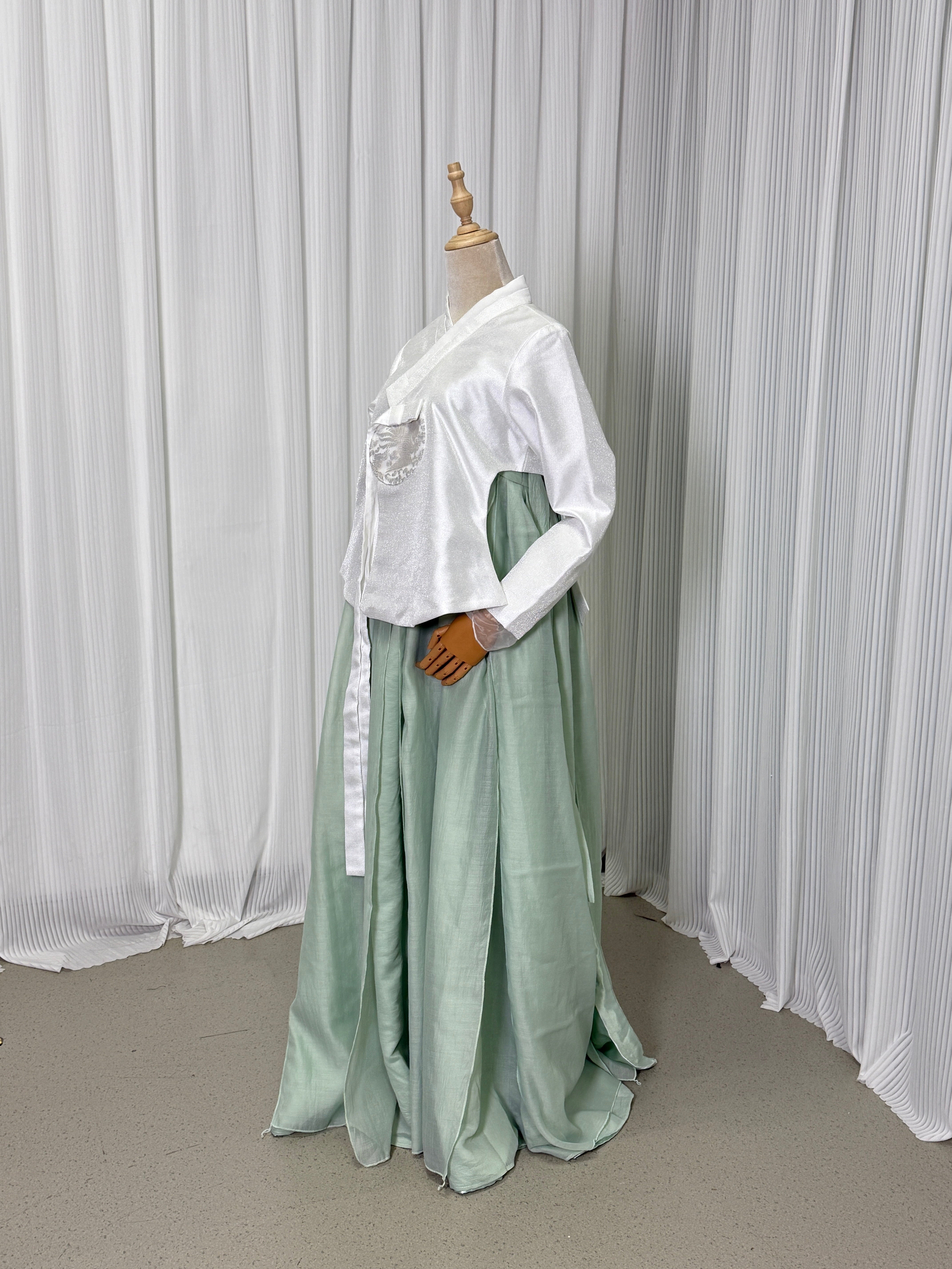 上品!チマチョゴリ ライトグリーン トップス+スカート ふわふわ クラシカル 前撮り