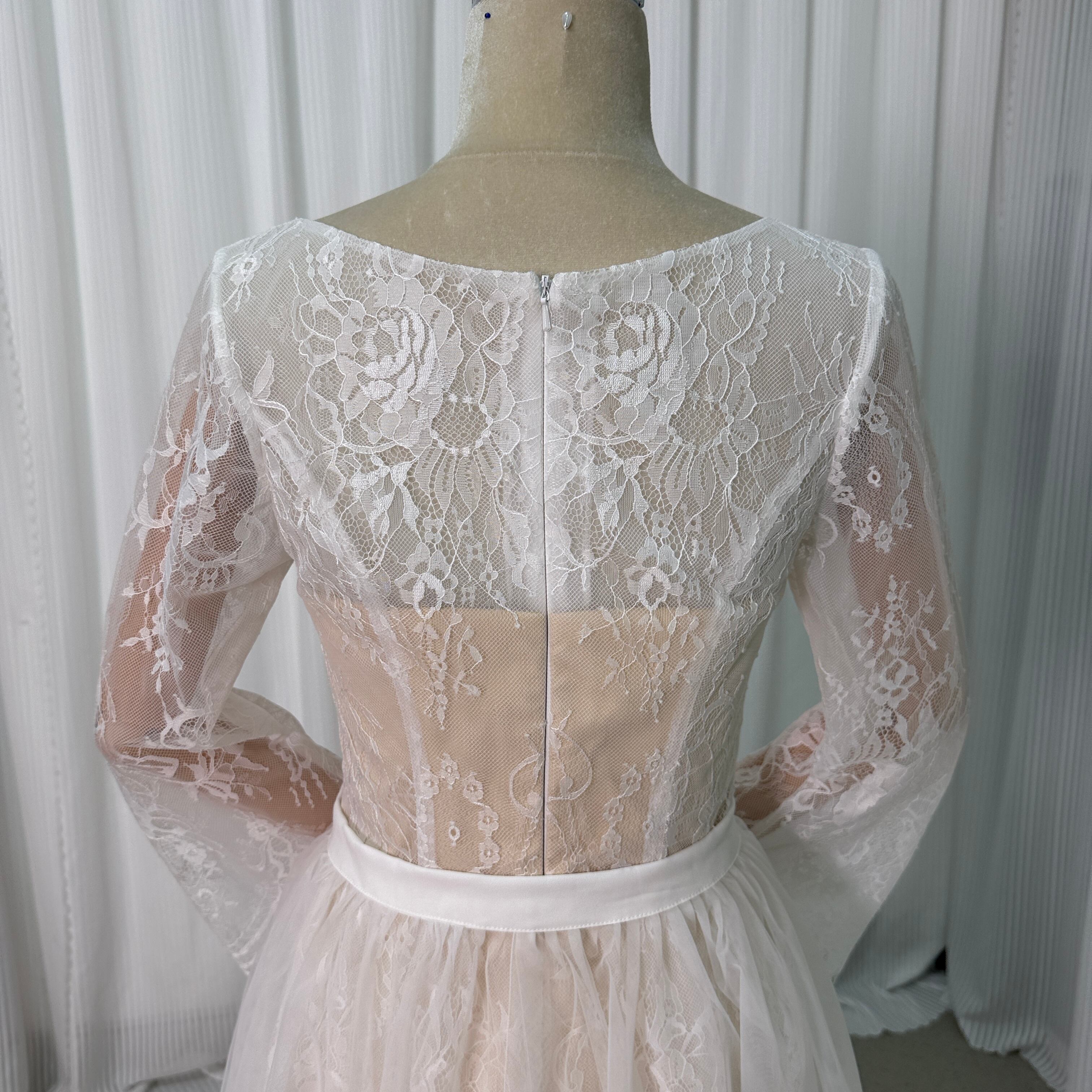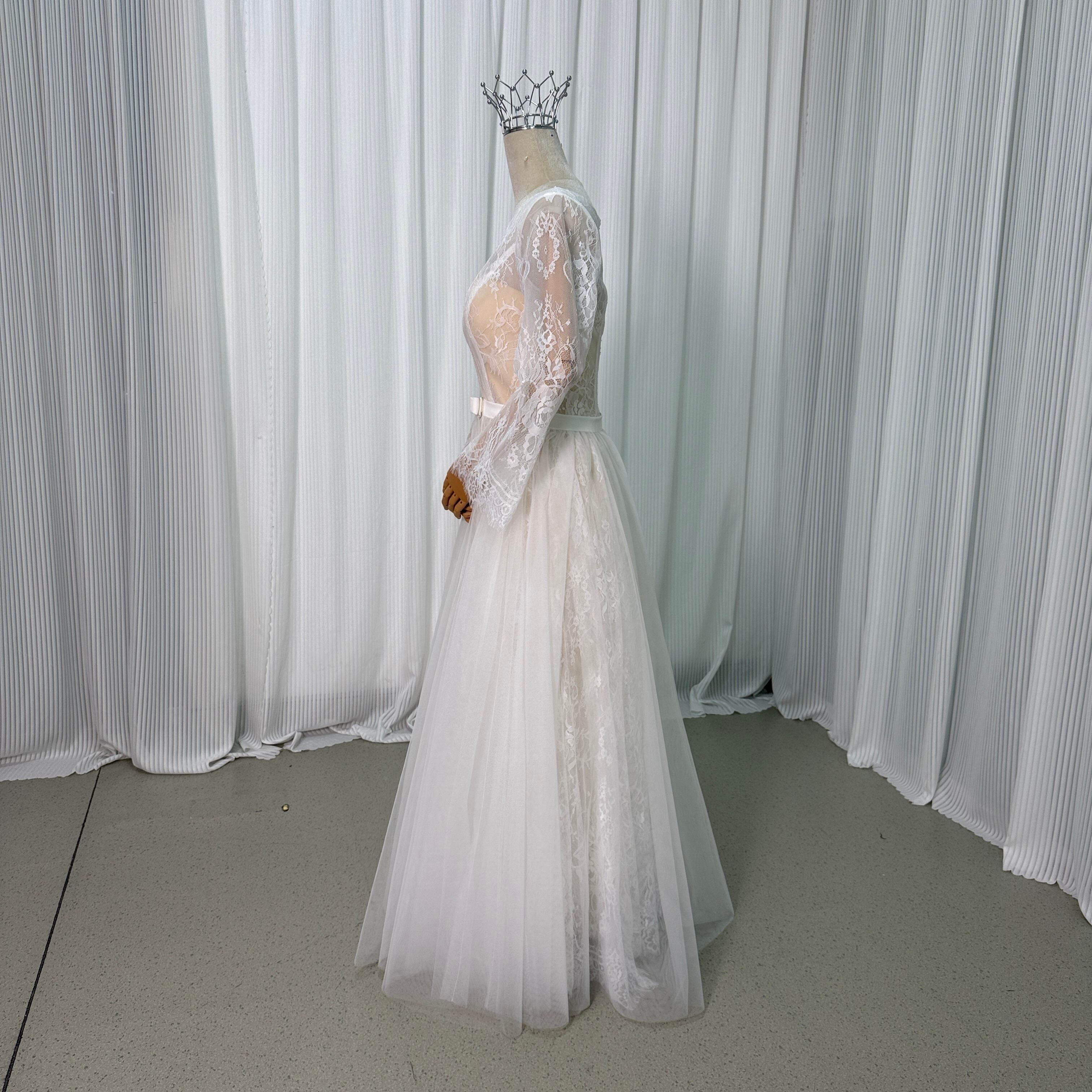 クラシカル パーティードレス スレンダードレス+オーバースカート 長袖 繊細総レース 結婚式 二次会 花嫁