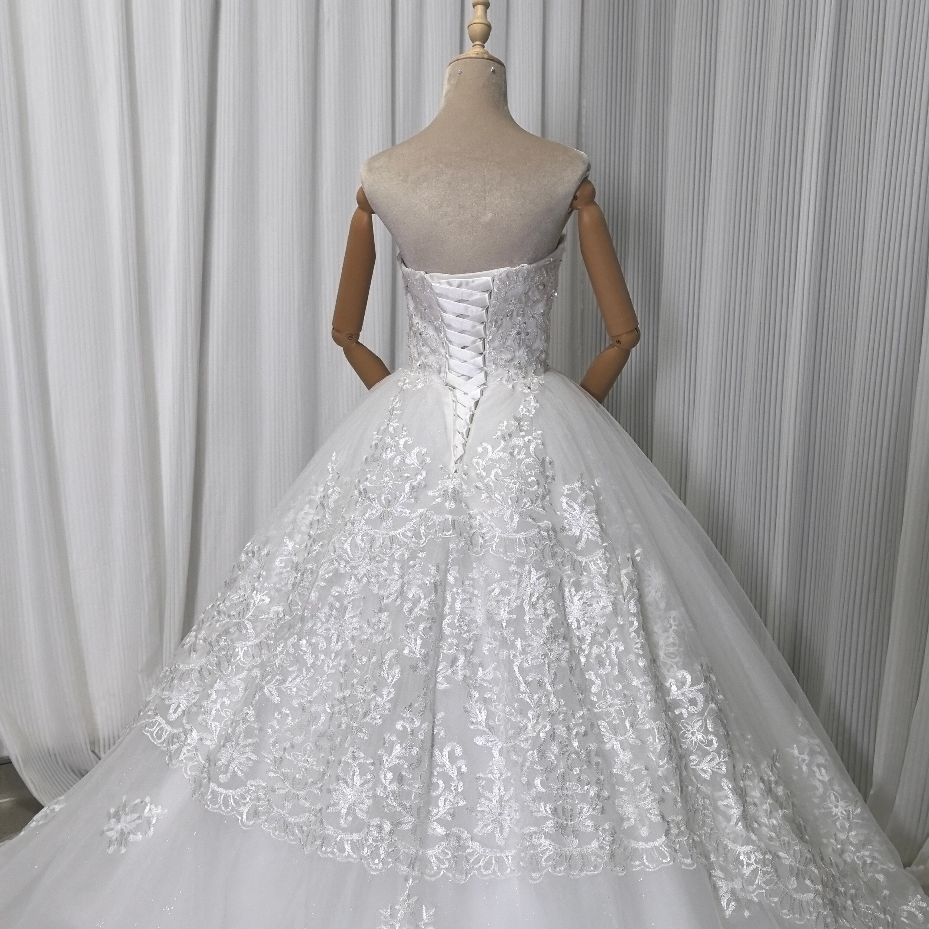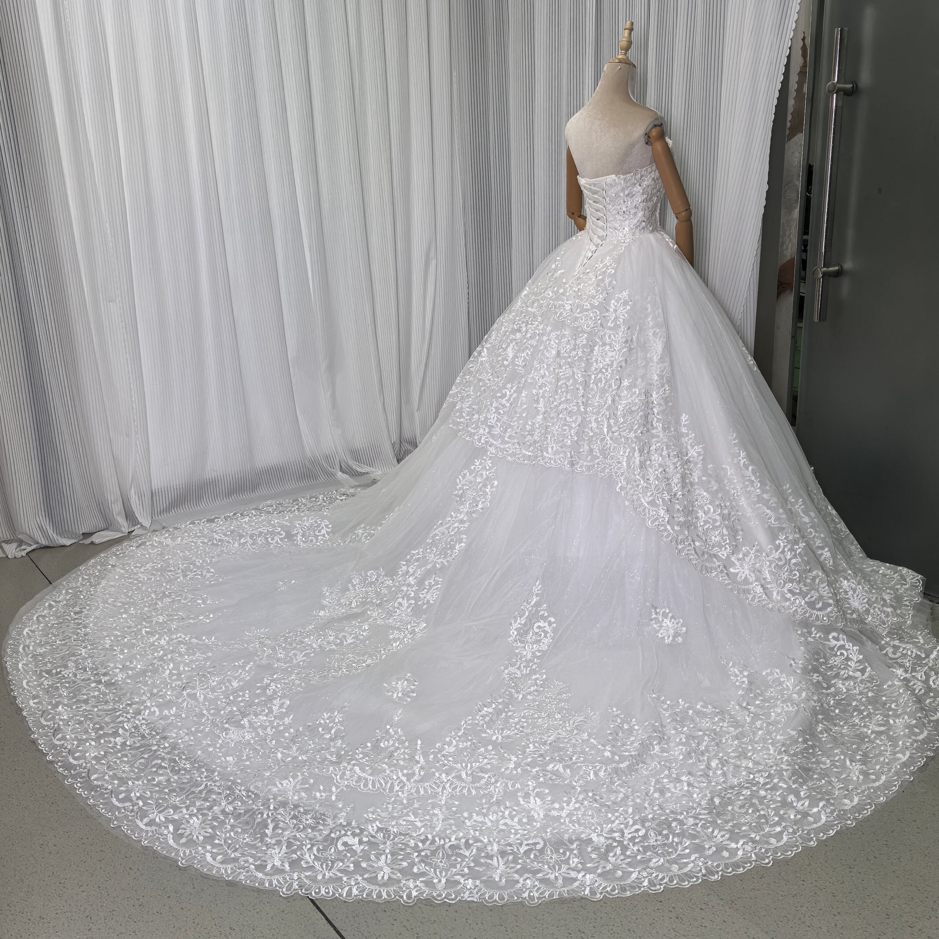 フランス風 ウェディングドレス ベアトップ キラキラスパンコール 上品レース 華やかなトレーン 結婚式