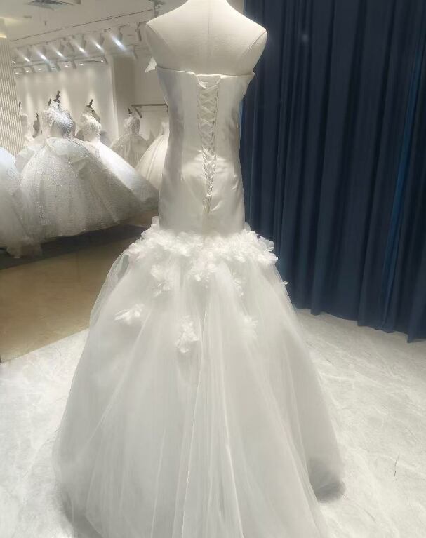 エレガント ウェディングドレス ベアトップ マーメイドライン 3D立体レース刺繍 編み上げ 結婚式