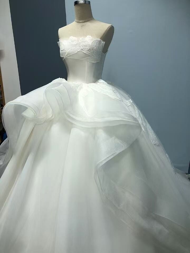 豪華!ウェディングドレス ベアトップ ラッフルフリル プリンセスライン 披露宴/結婚式