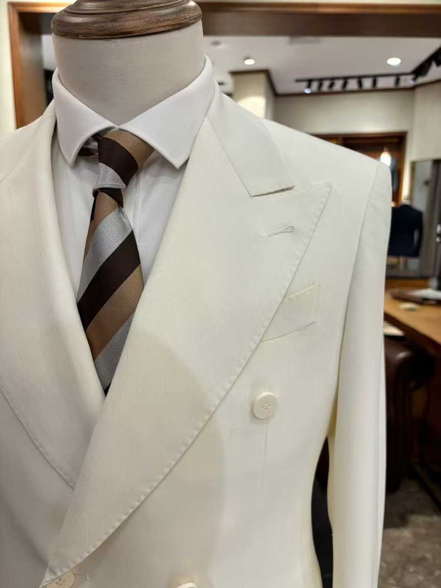 高品質! 新郎衣装 オフホワイト タキシード ジャケット ベスト、パンツの3点セット 色直し