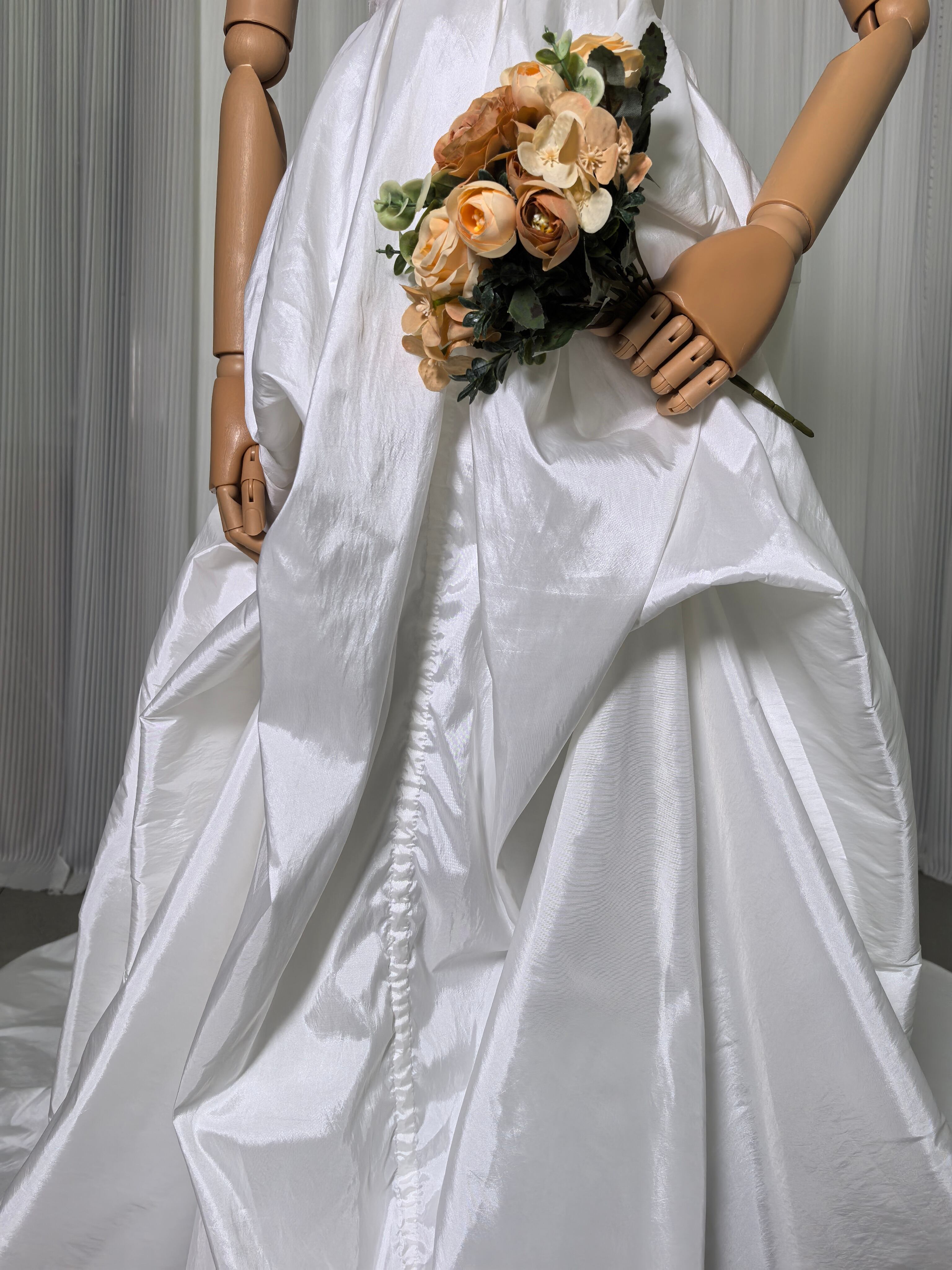 実例写真!ウェディングドレス ベアトップ シルクタフタ フィッシュテール デザイン感 結婚式 前撮り