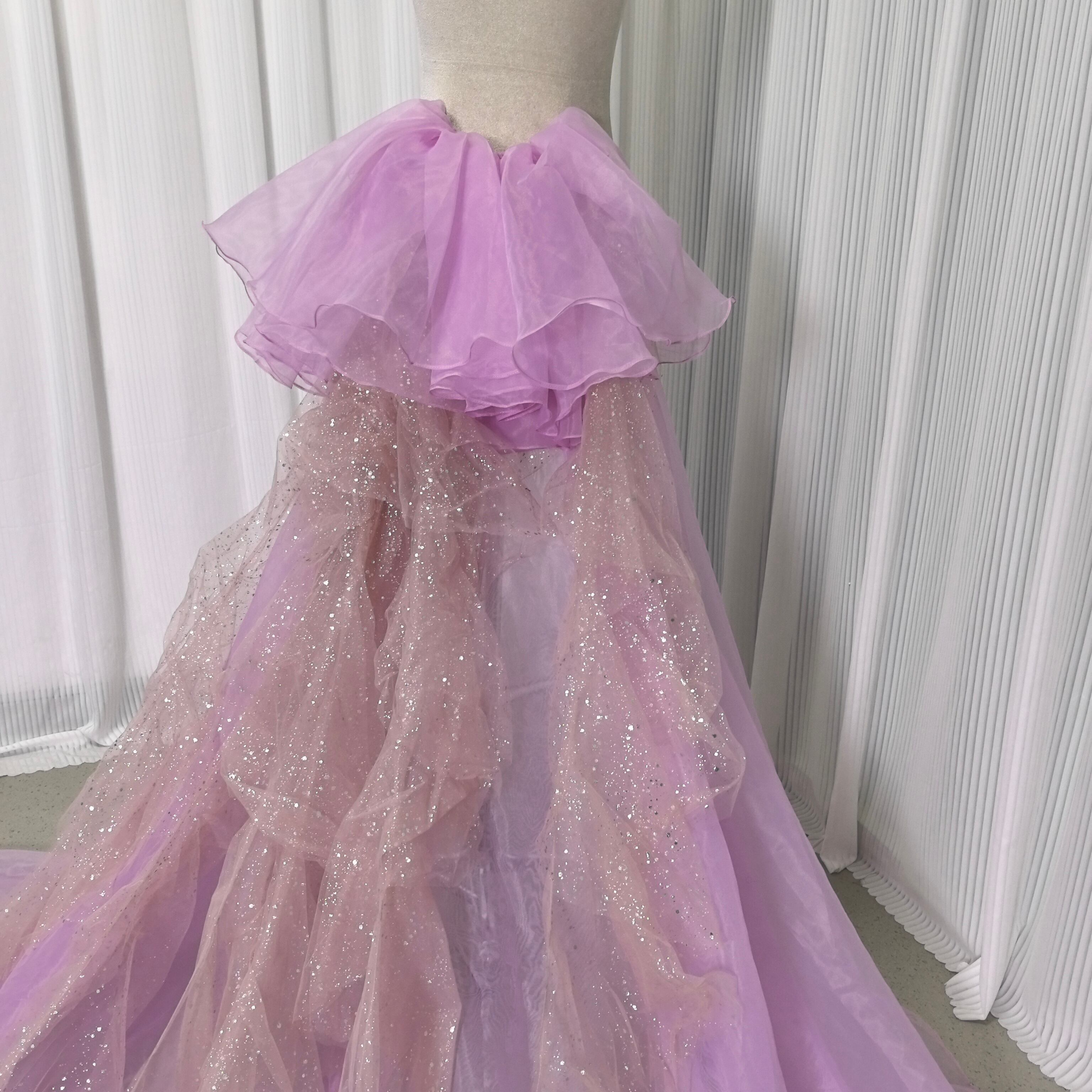 華やかなトレーン ピンク紫 キラキラチュール 上質オーガンジー 可愛い 前撮り ふわふわ