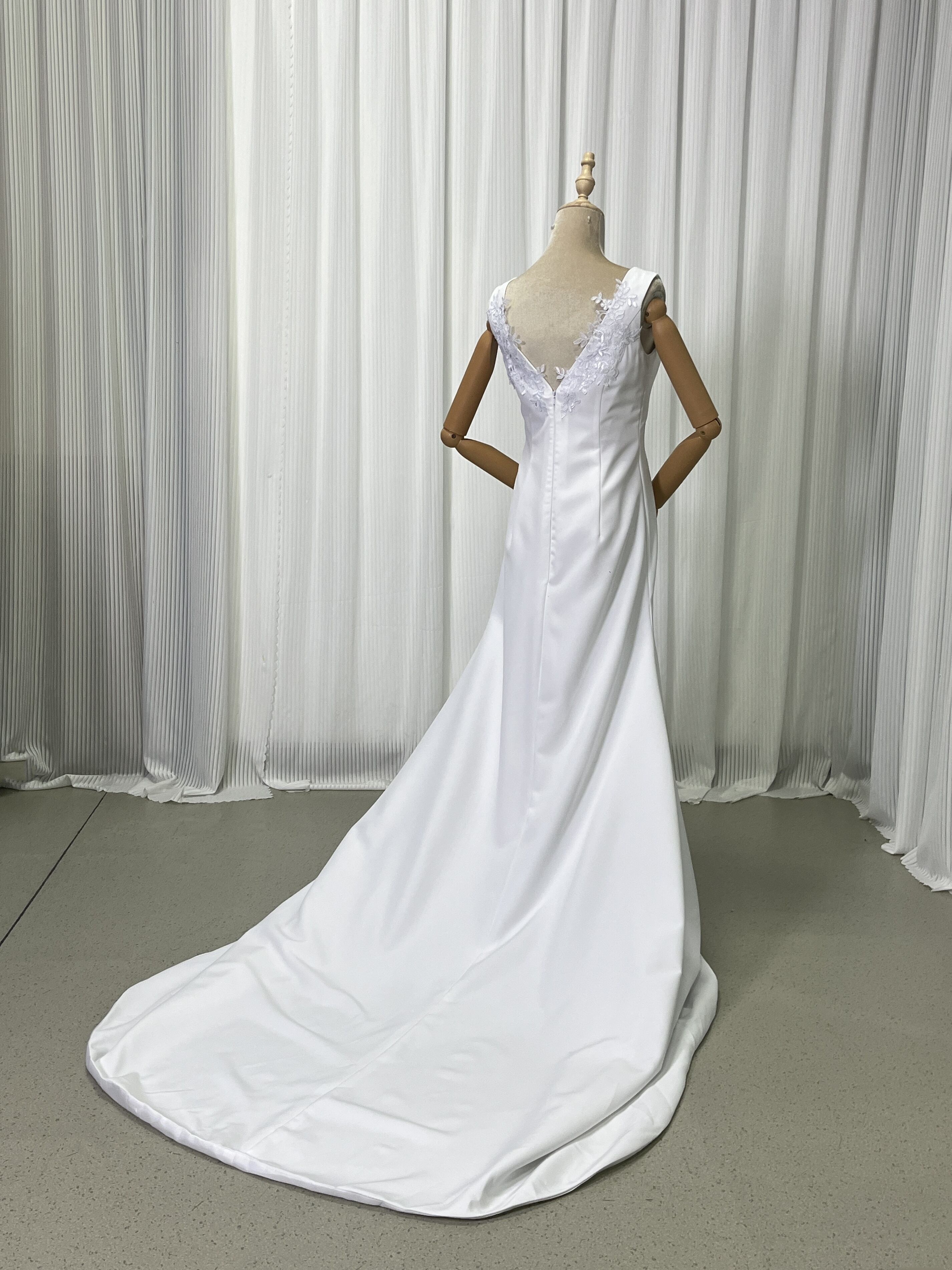 パーティードレス Vネック オフホワイト クレープ生地 美しいバックレース 優雅 披露宴