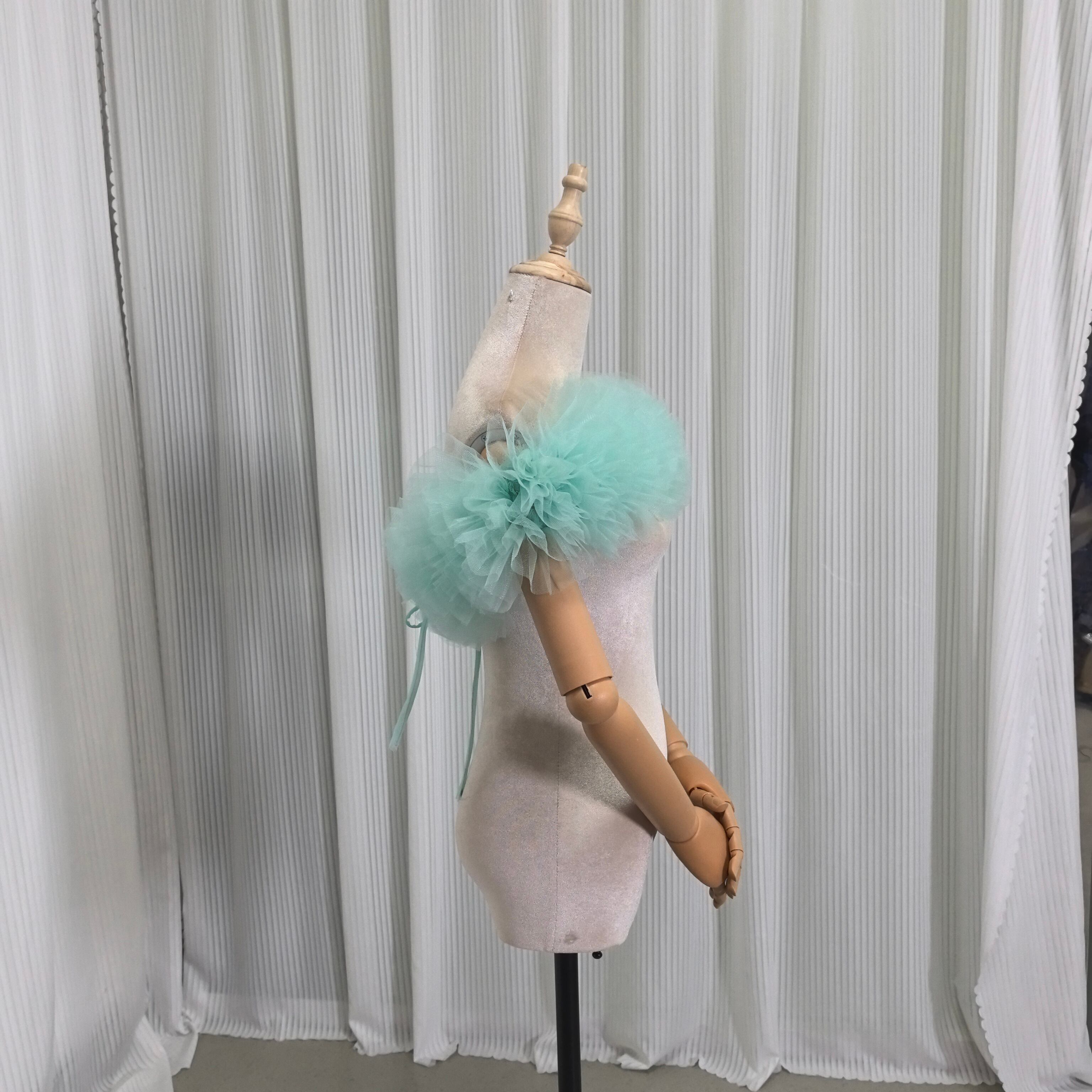 取り外しオフショルダー ブルー ソフトチュール 編み上げ 披露宴 前撮り 派手な 色直し