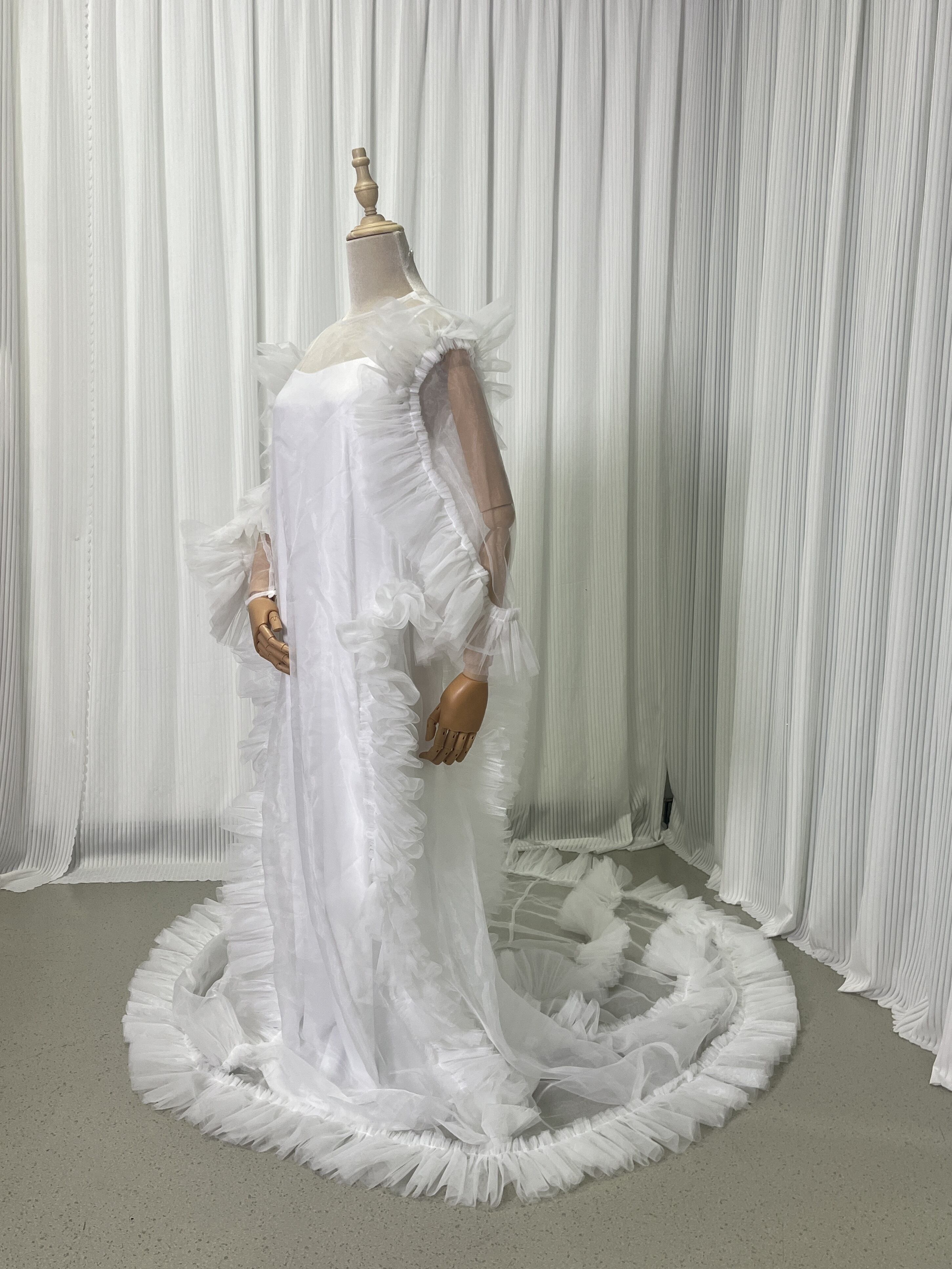 2ways オフホワイト オーバードレス+キャミソール ロングトレーン オーガンジー 妊婦 前撮り