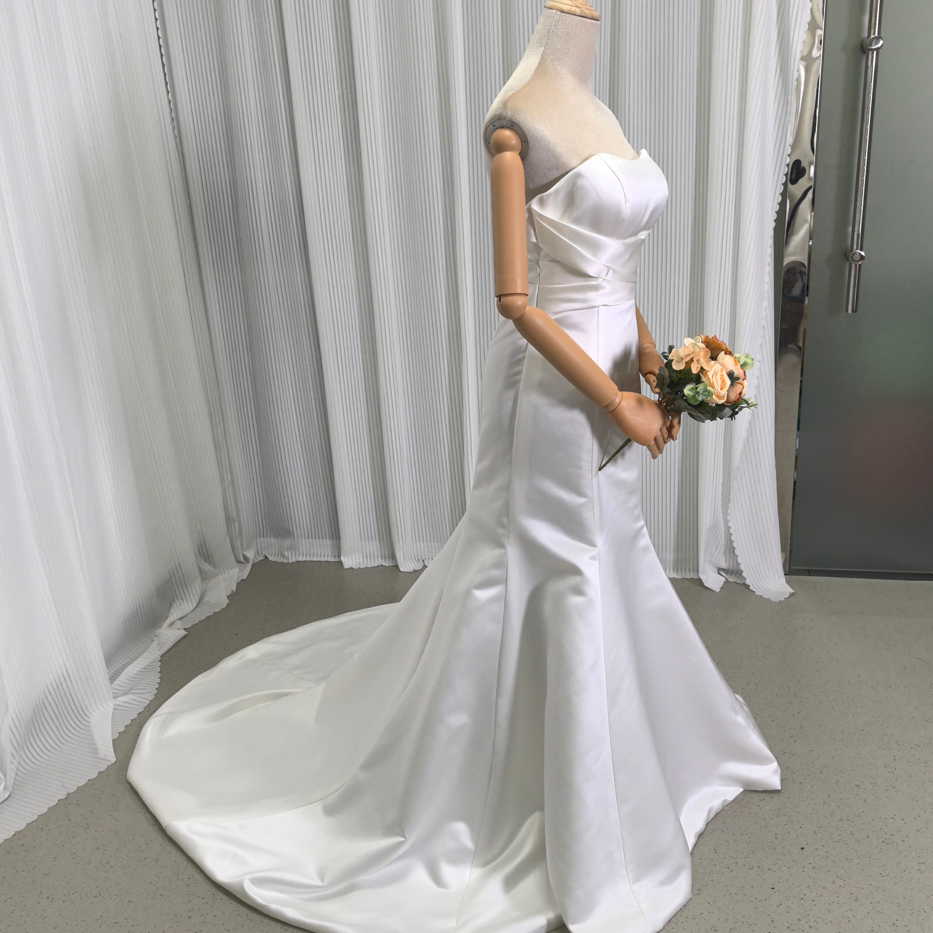 ウェディングドレス アイボリー マーメイドライン 豪華なバックリボン 光沢サテン 結婚式 大人っぽい
