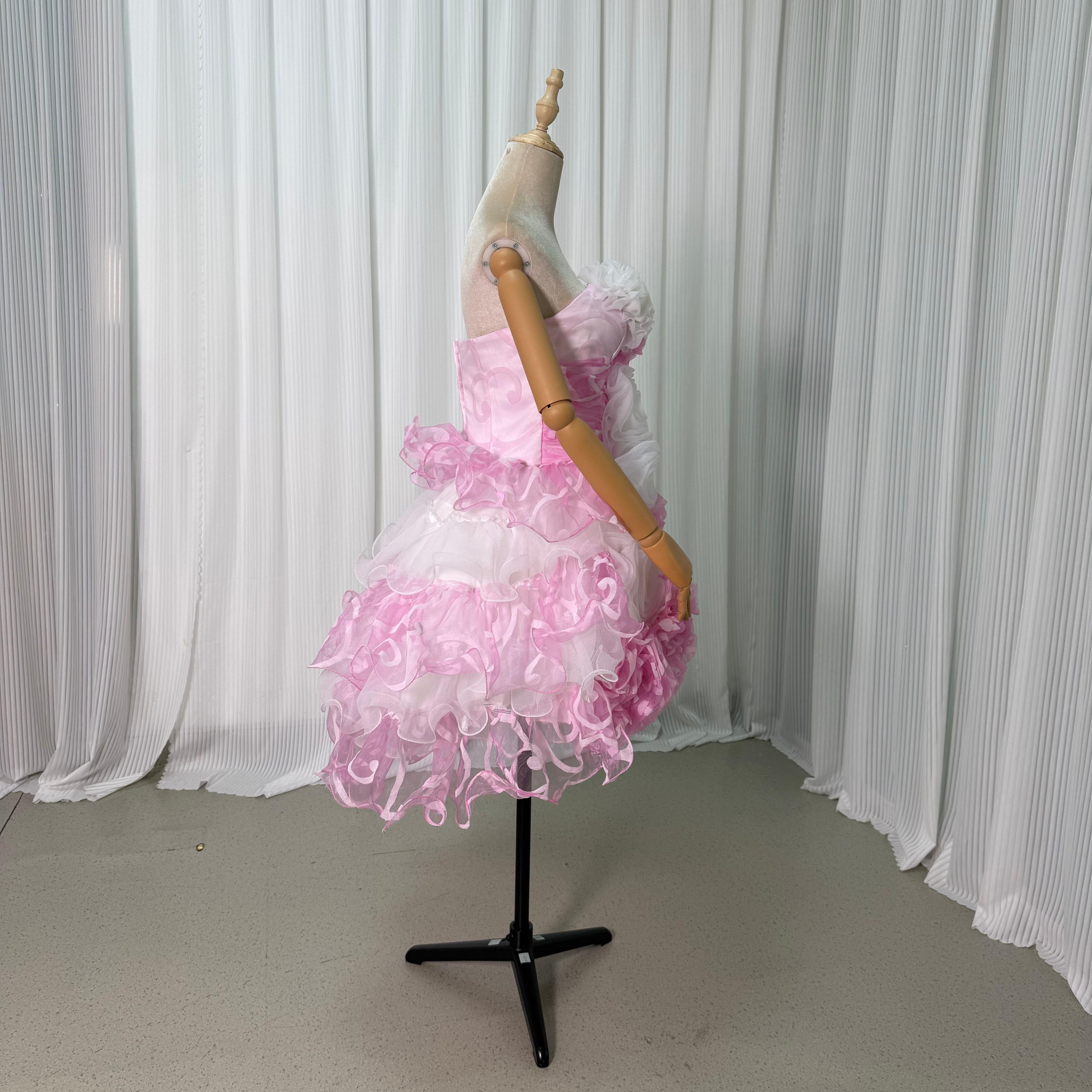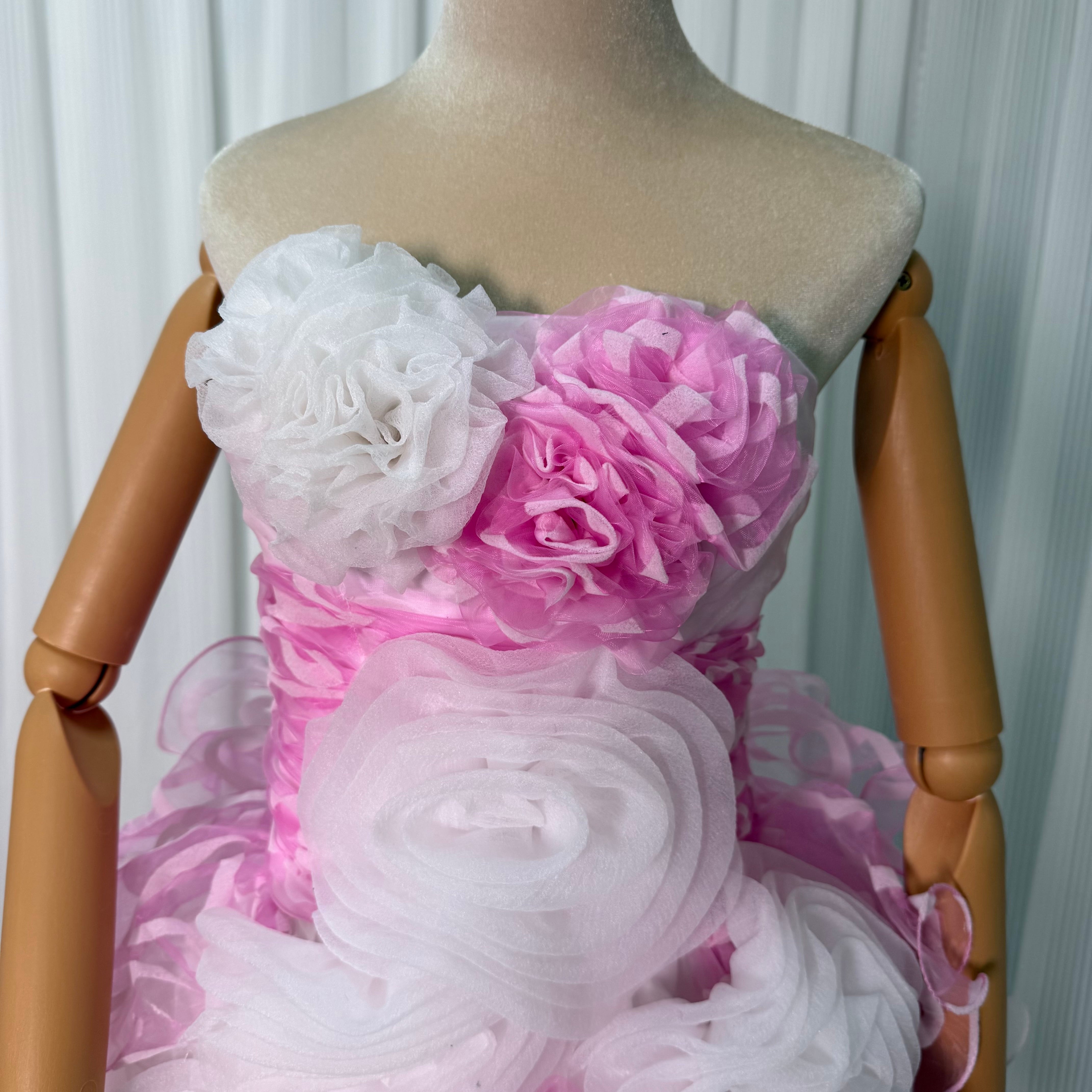 ミニドレス ピンク ホワイト カラードレス 花嫁ドレス 花モチーフ ファスナー 二次会