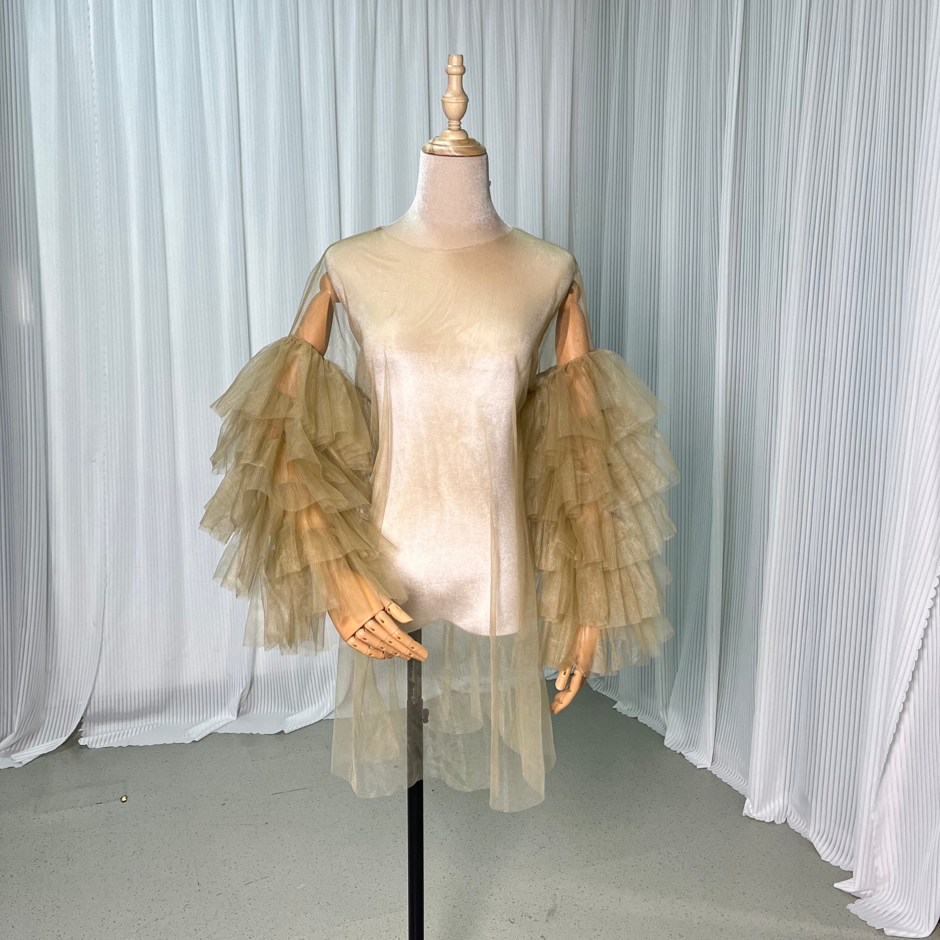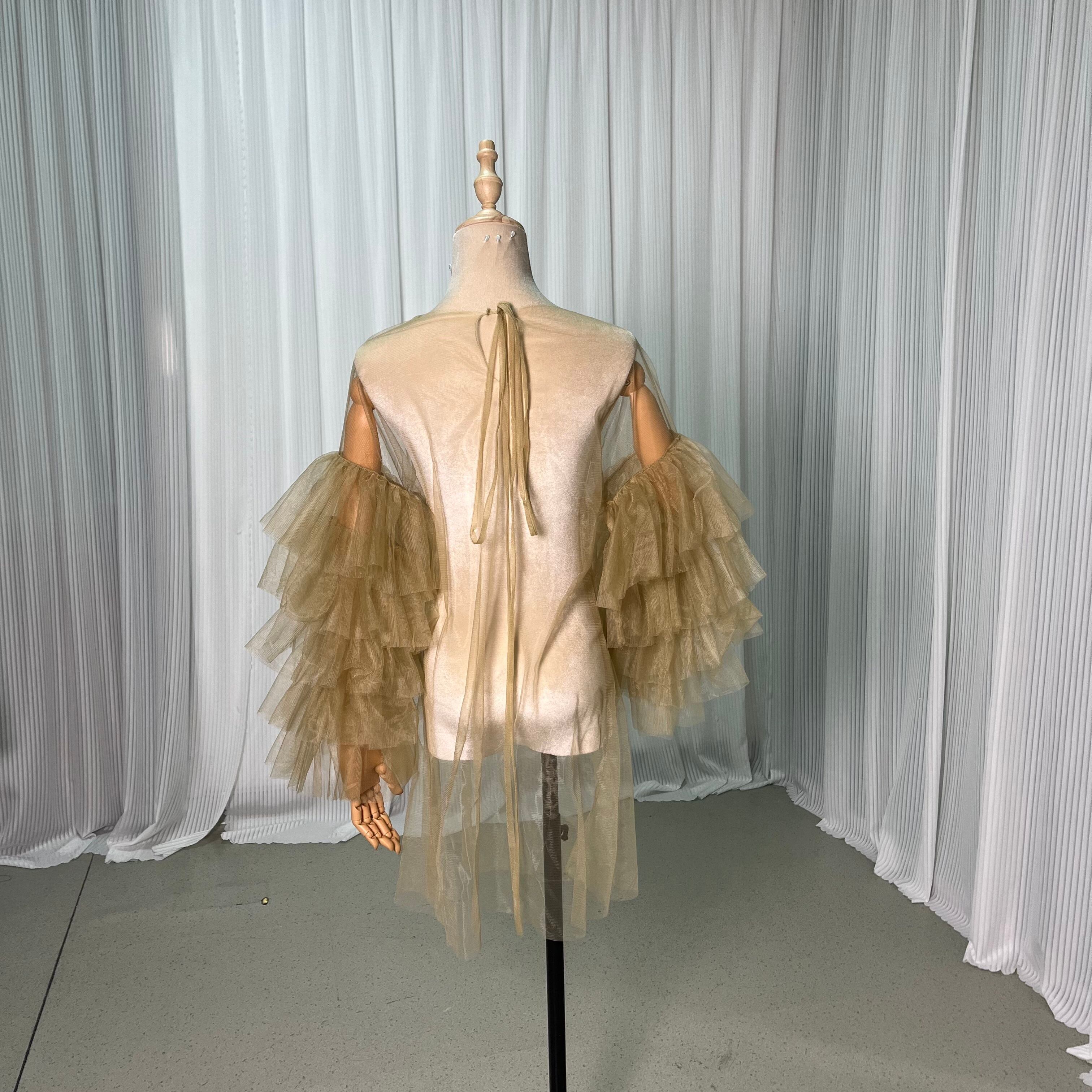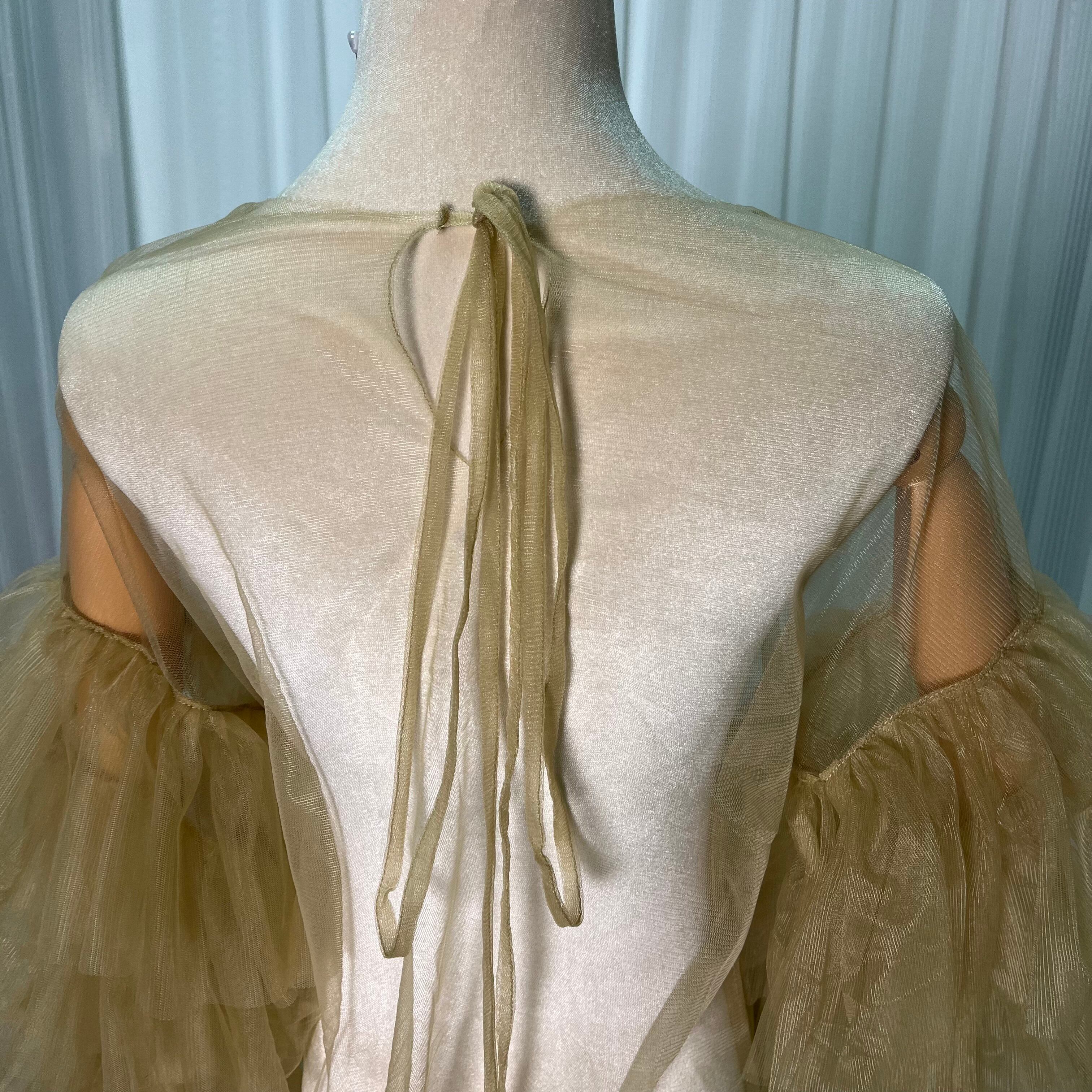 トップス カーキ色 ソフトチュール ロングスリーブ ウェディングドレス カーディガン