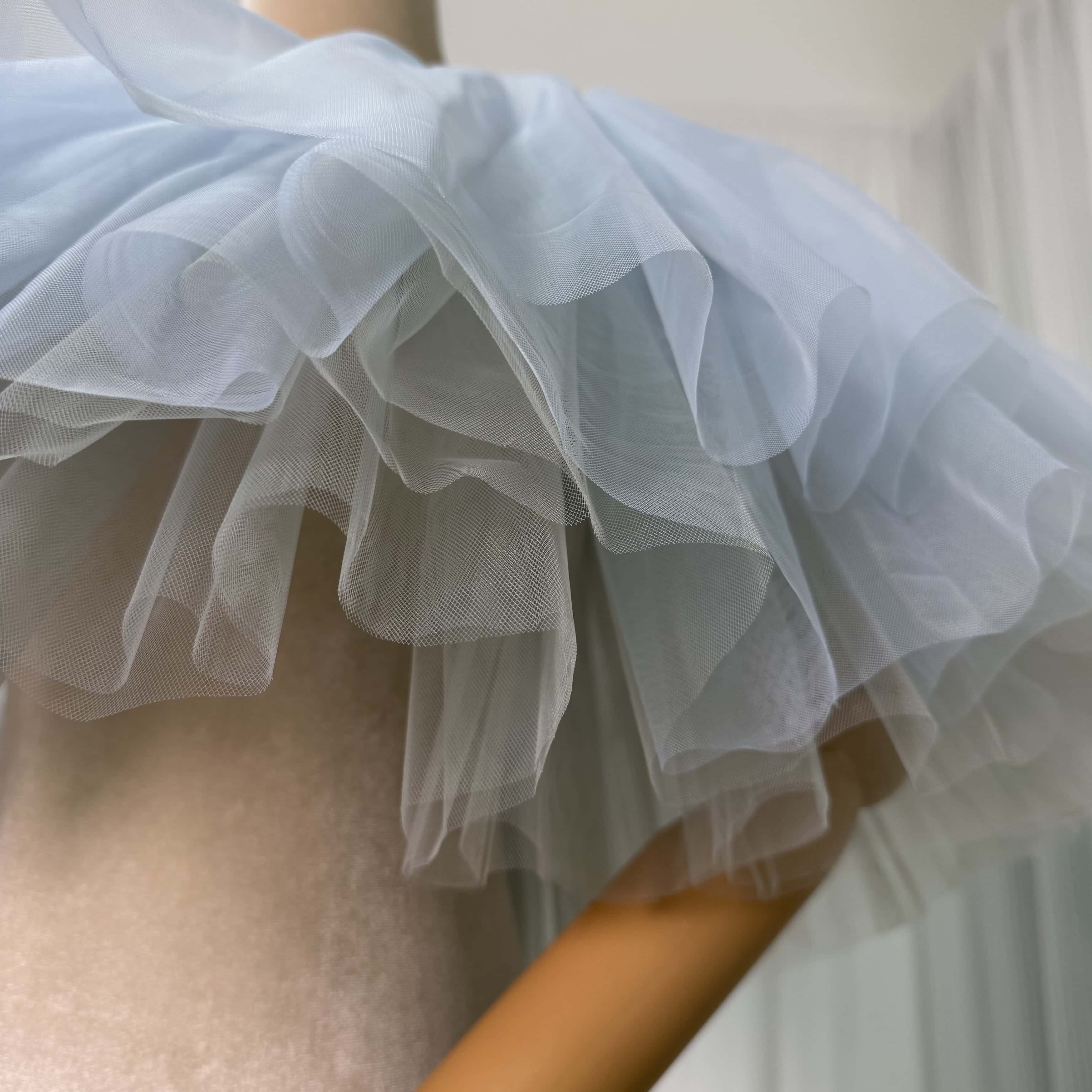 取り外しオフショルダー ブルー ソフトチュール ストレッチ 花嫁/ウェディングドレス