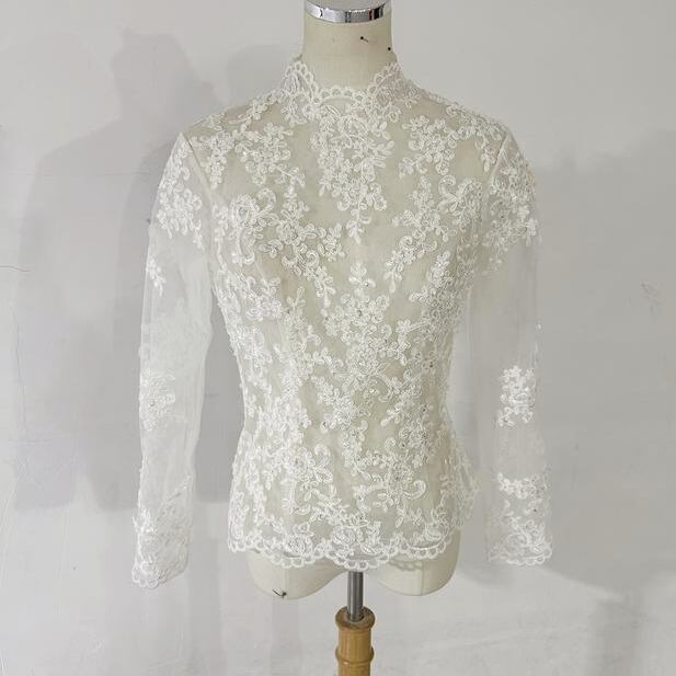 実例写真!ボレロ ロングスリーブ キラキラスパンコール ハンドメイド くるみボタン ウェディングドレス