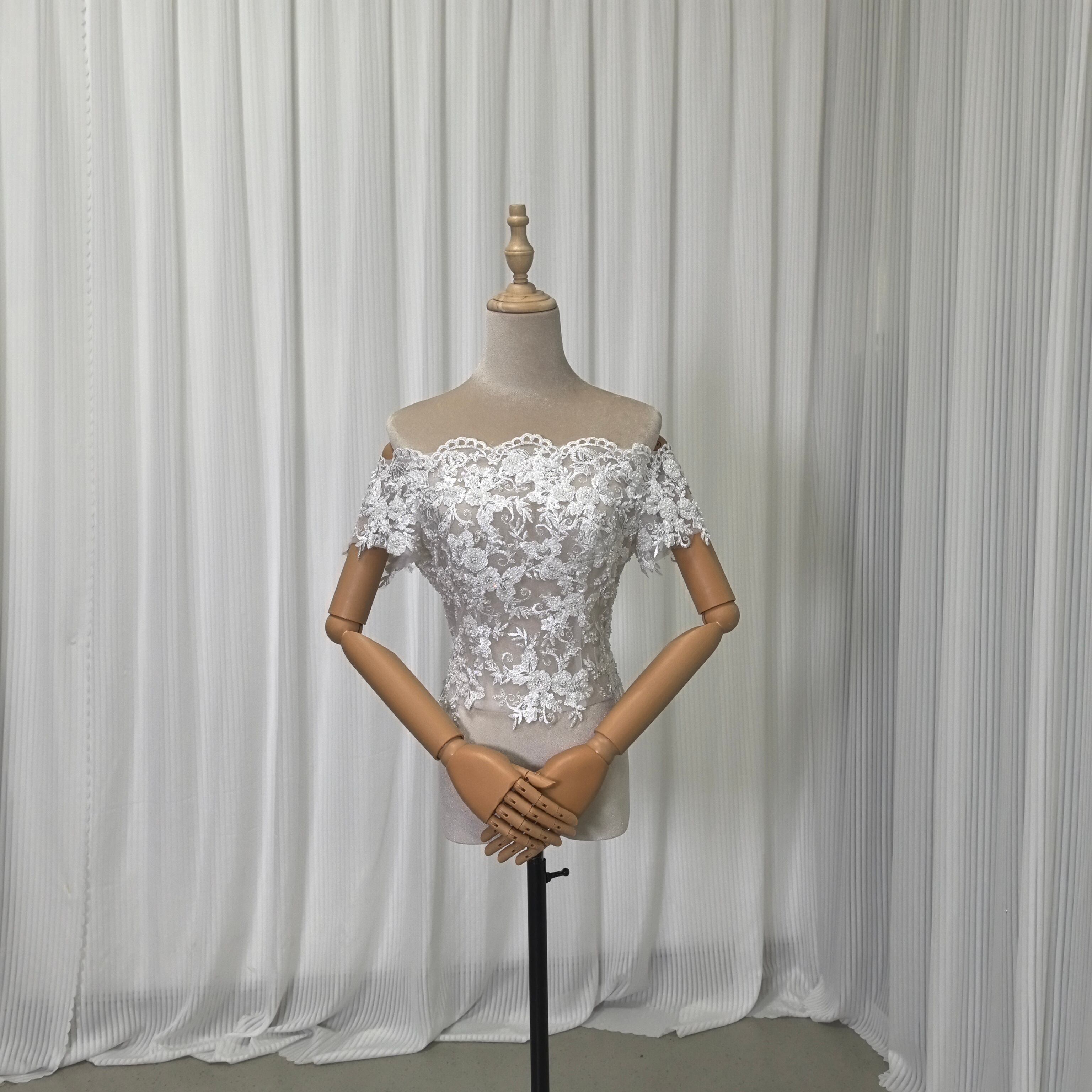 ボレロ オフショルダー 短袖 くるみボタン キラキラ光る刺繍 披露宴/結婚式