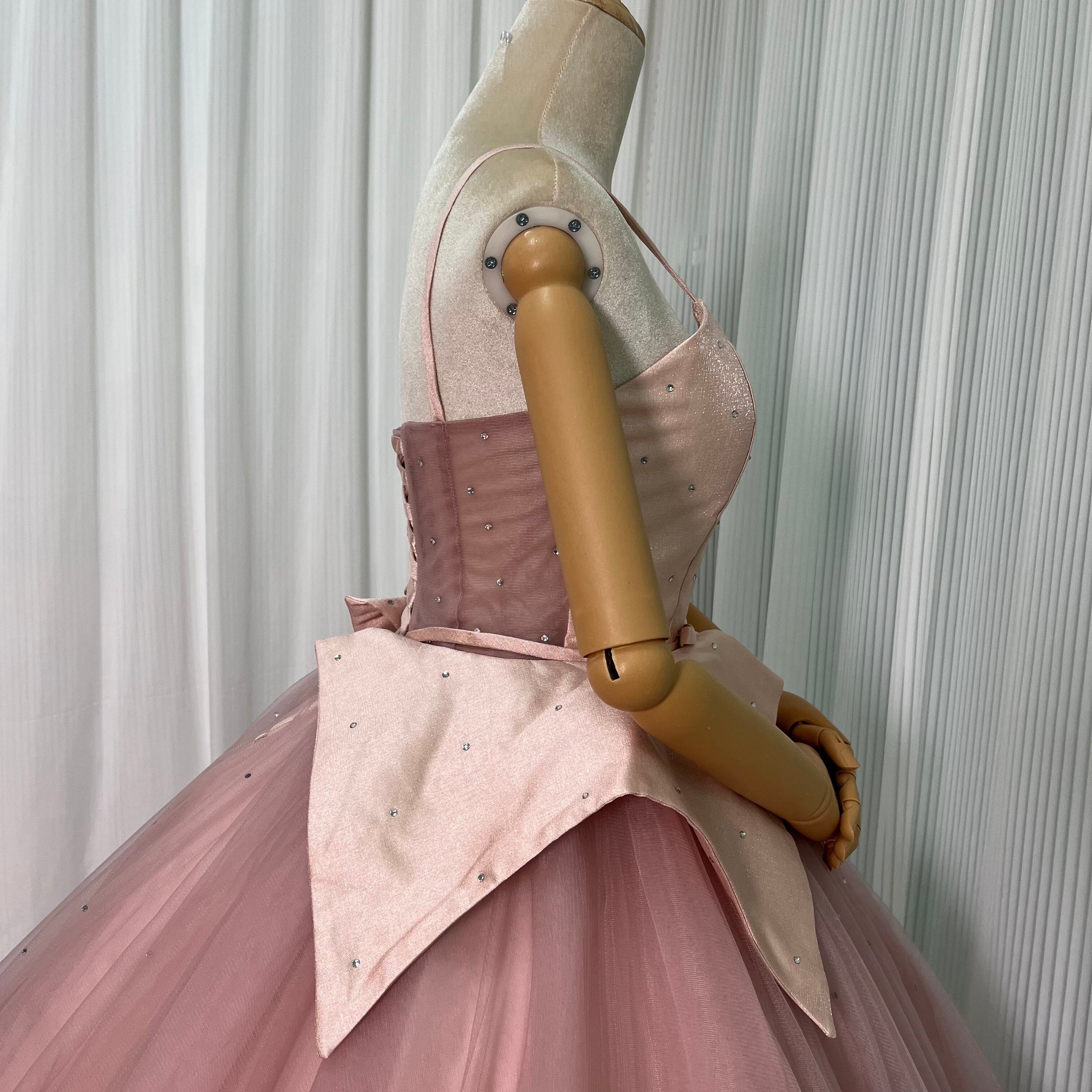 美品!オリジナルドレス ピンク カラードレス パール 編み上げ ボリュームドレス 披露宴