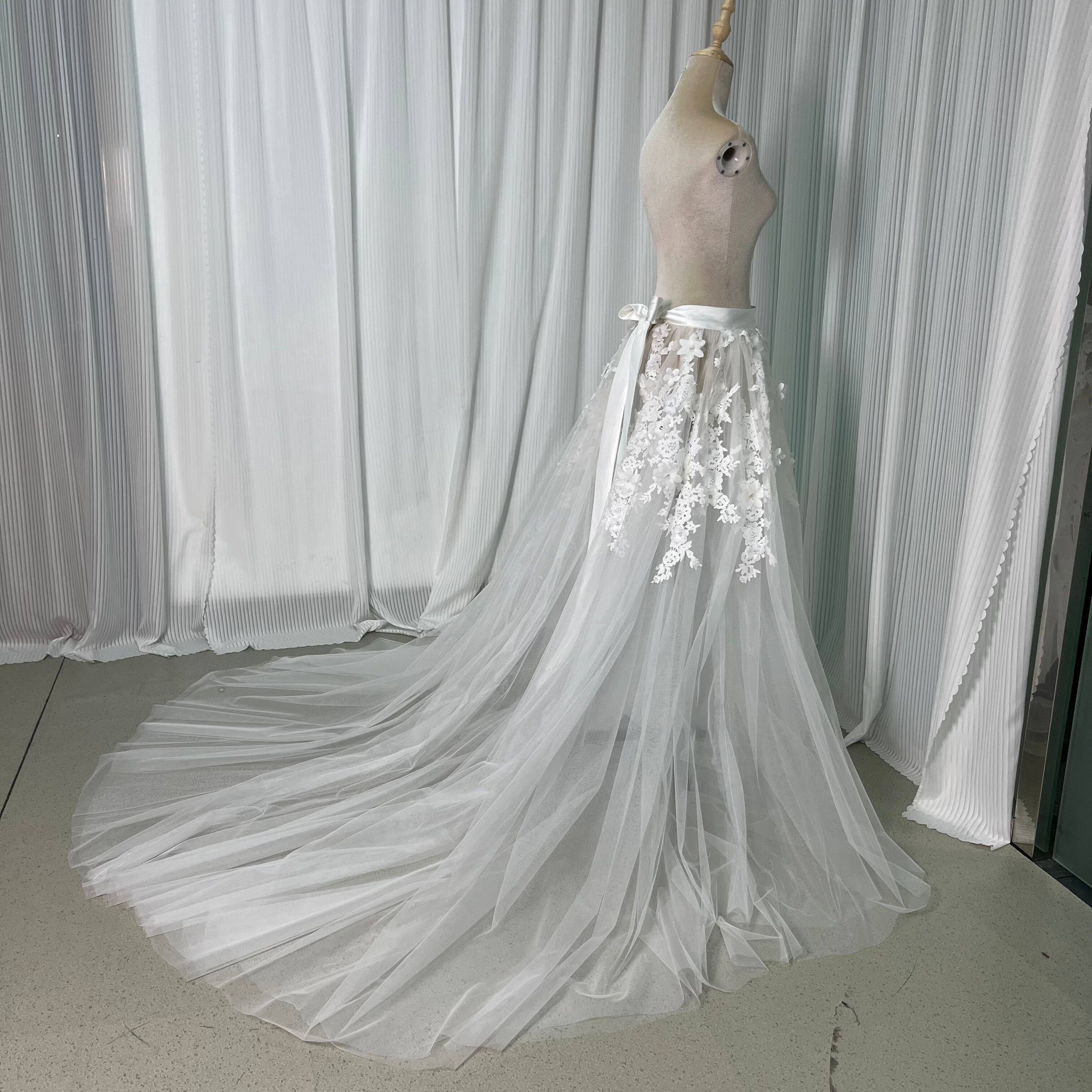 オーバースカート 3D立体レース刺繍 リボン チュールスカート 花嫁/ウェディングドレス
