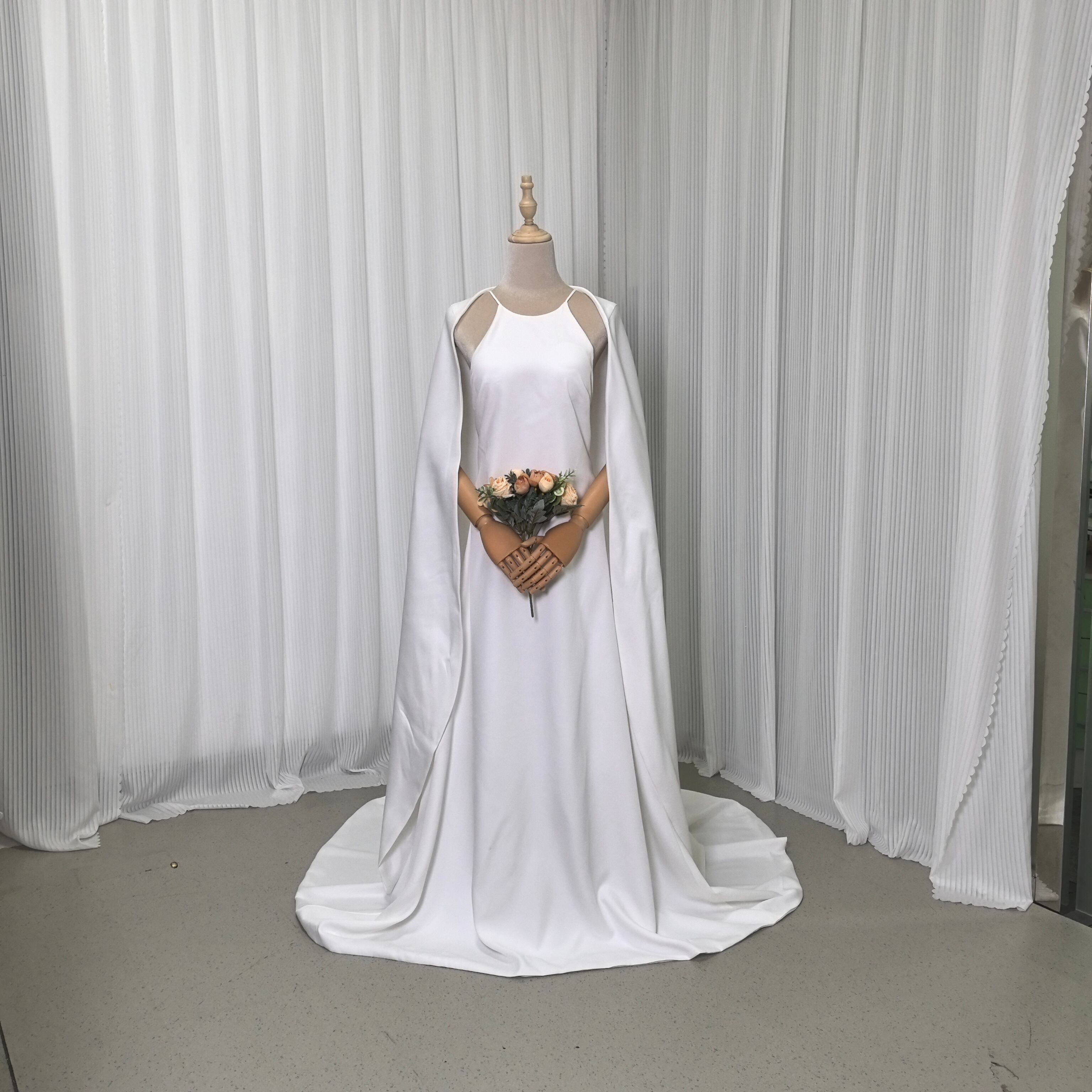 エレガント ウェディングドレス ケープ風ドレス キャミソール スレンダーライン 二次会 前撮り