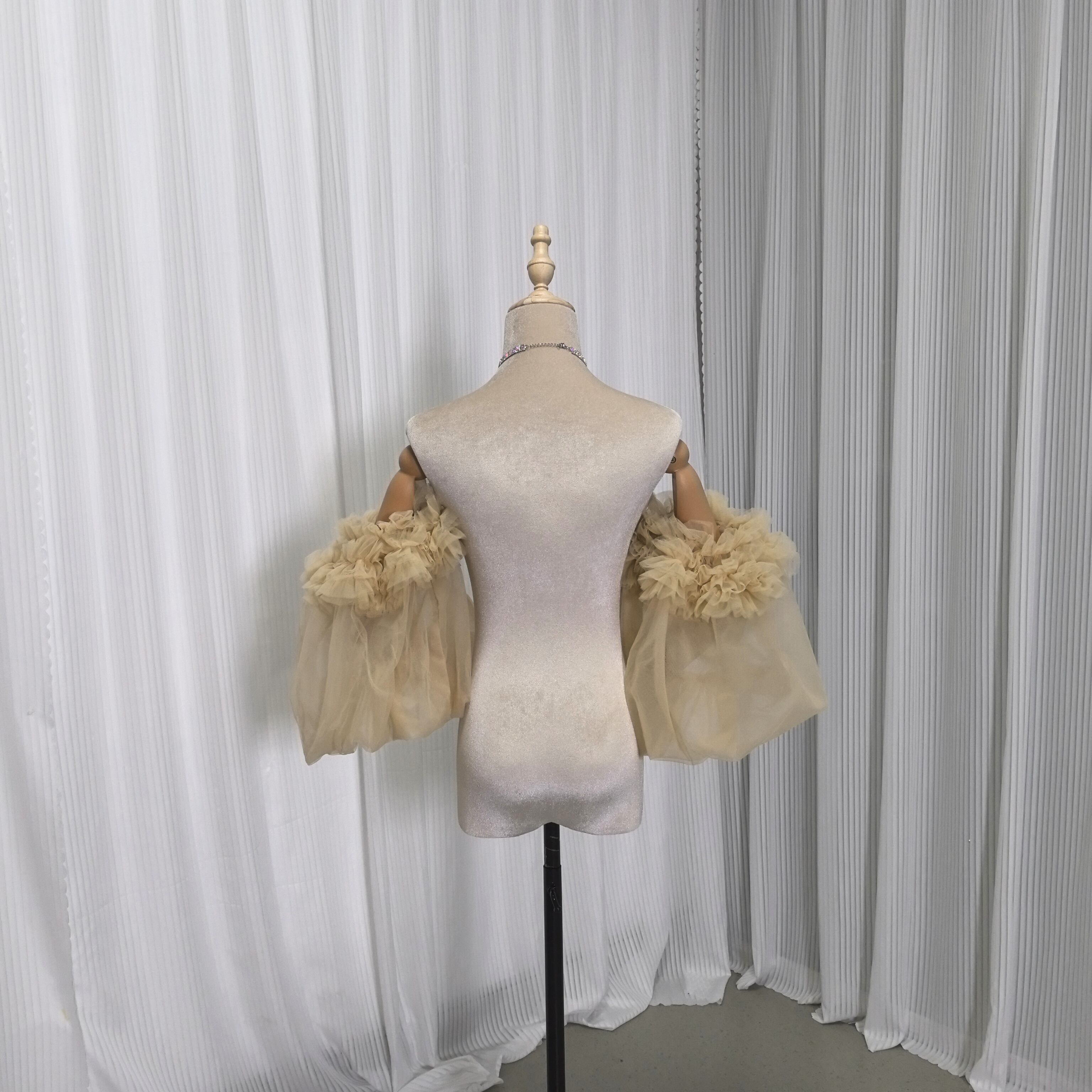 イエロー パフスリーブ ソフトチュール ストレッチ 可愛い ラッフルフリル 結婚式 前撮り