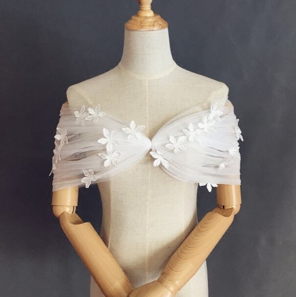 取り外しオフショルダー 立体花レース刺繍 オフホワイト 編み上げ 結婚式