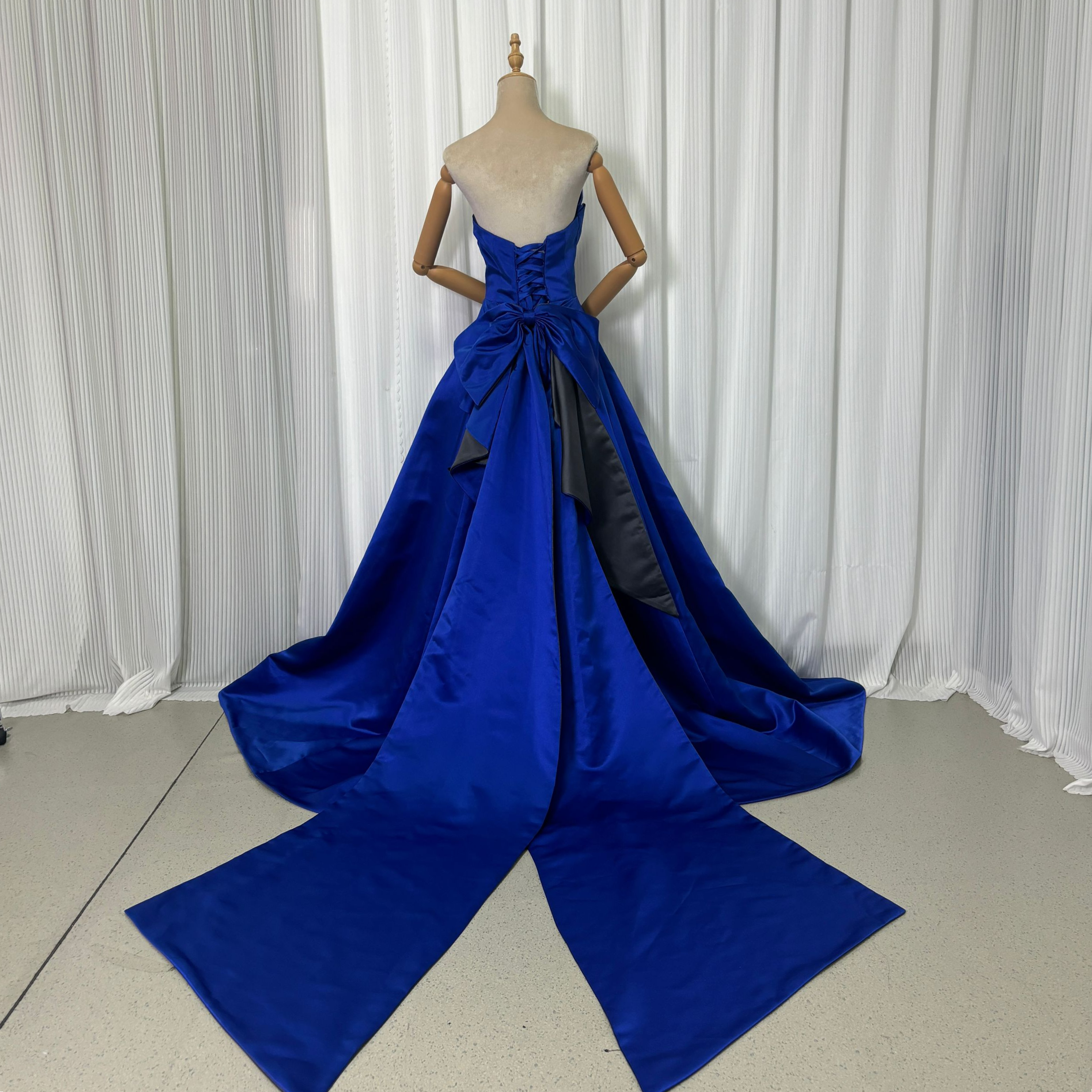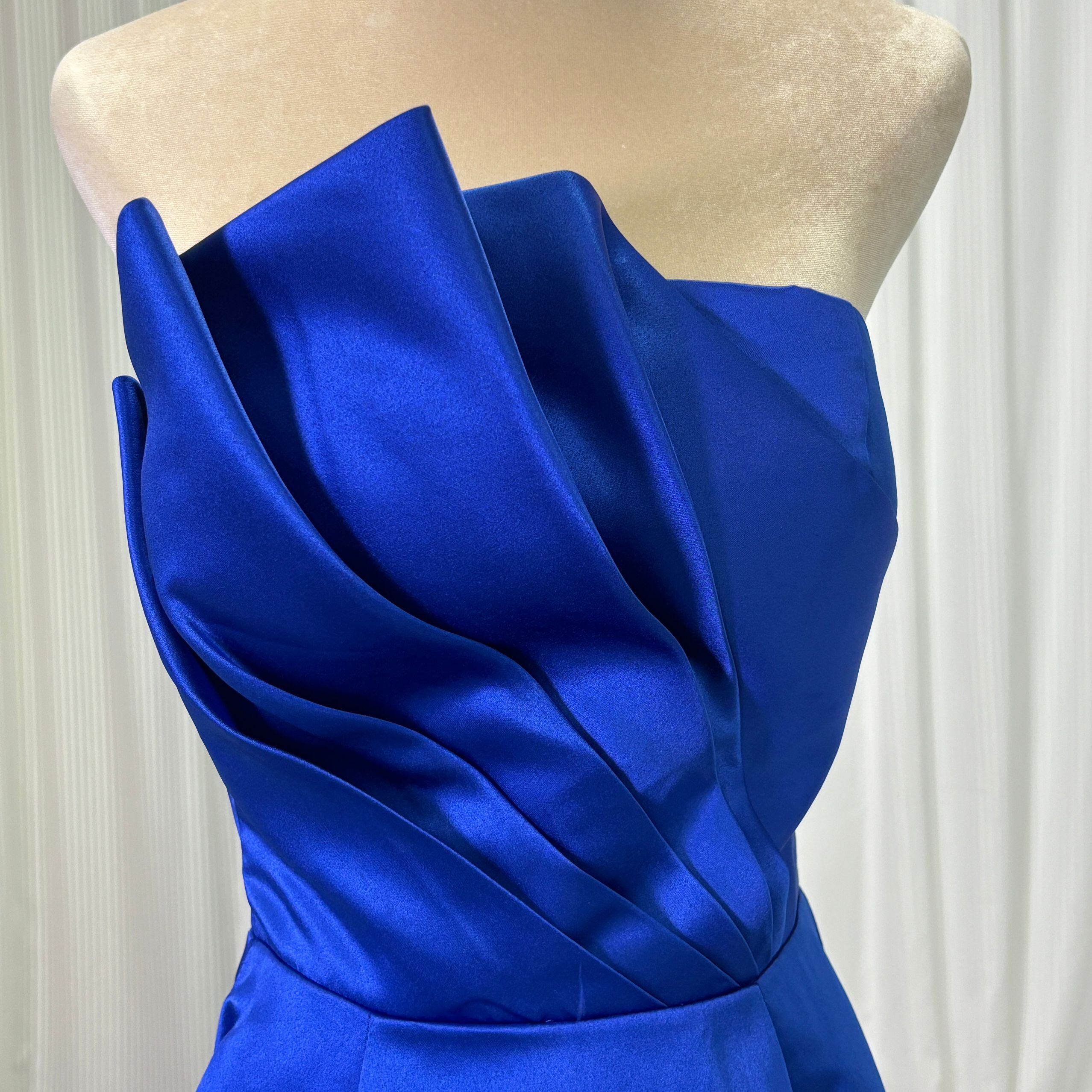 カラードレス ジュエルブルー ベアトップ ハンドドレープ 光沢感 バックリボン 編み上げ 演奏会
