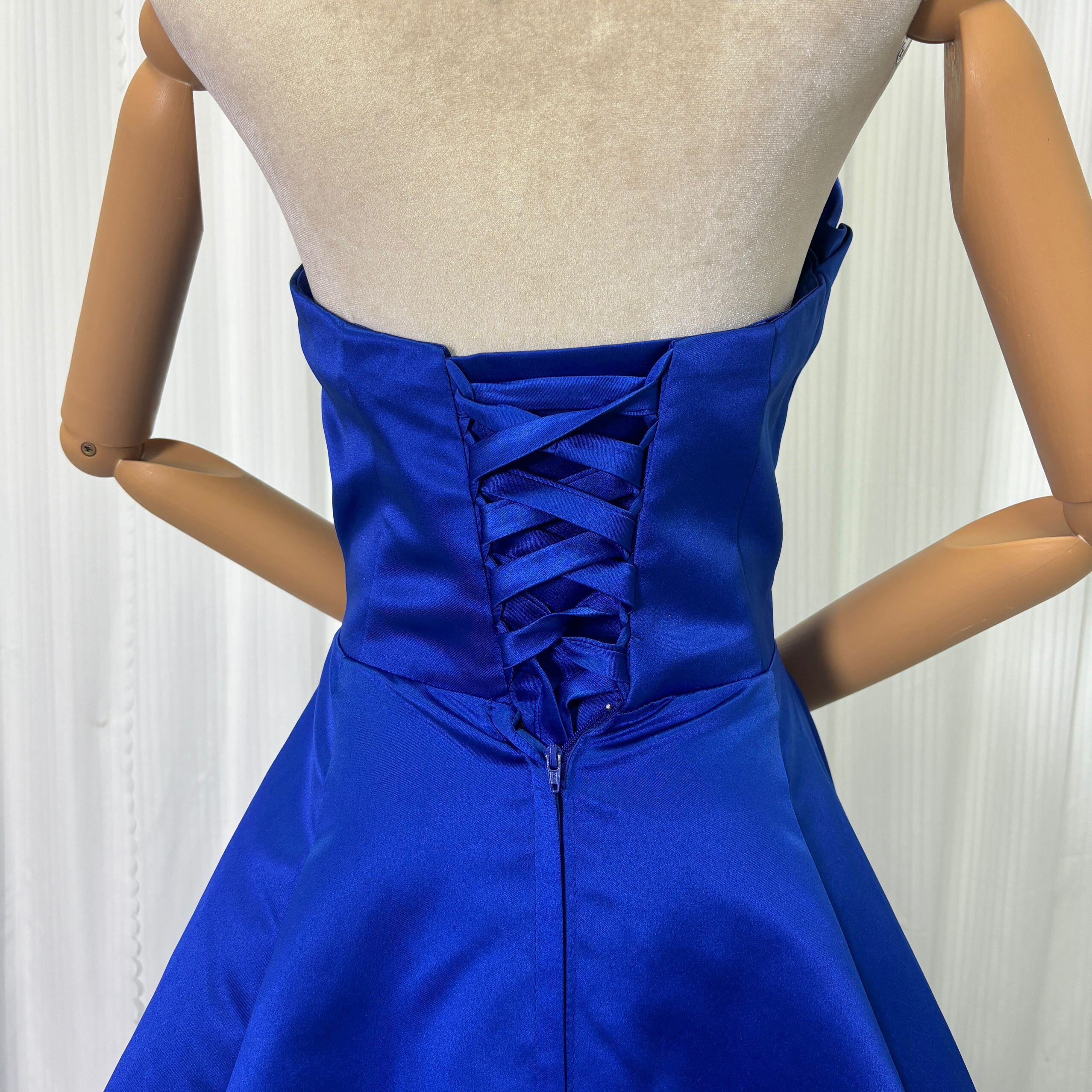 カラードレス ジュエルブルー ベアトップ ハンドドレープ 光沢感 編み上げ 演奏会
