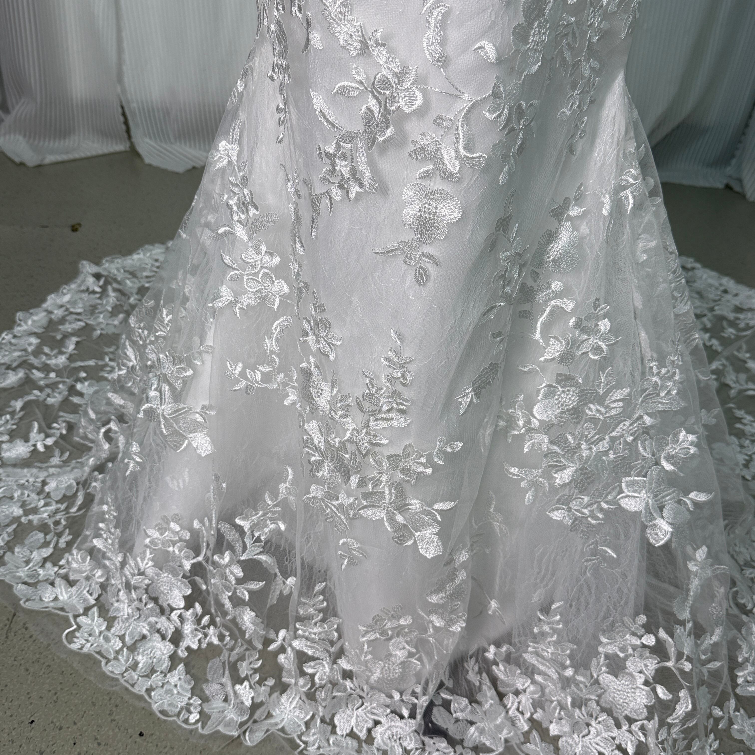ウェディングドレス 贅沢な小花総レース キャミソール Vネック マーメイドライン 華やかなトレーン 披露宴