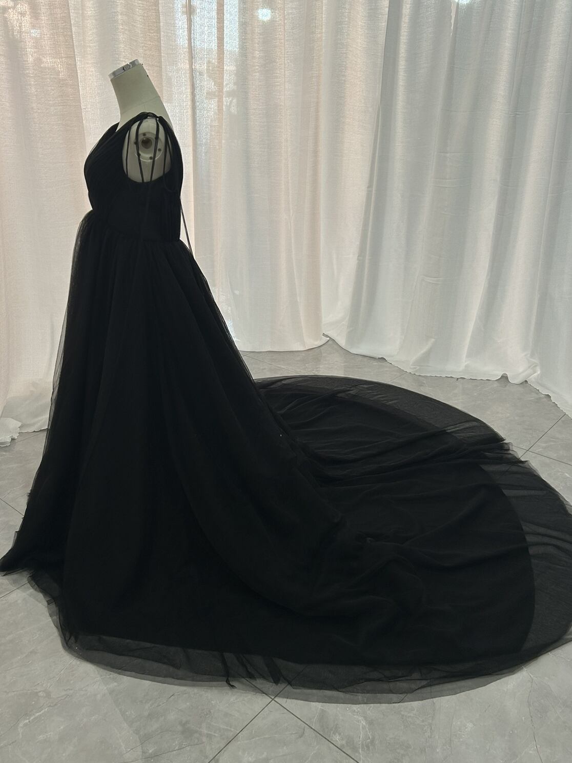 実例写真!パーティードレス ブラック キャミソール Vネック チュールスカート スレンダーライン 前撮り
